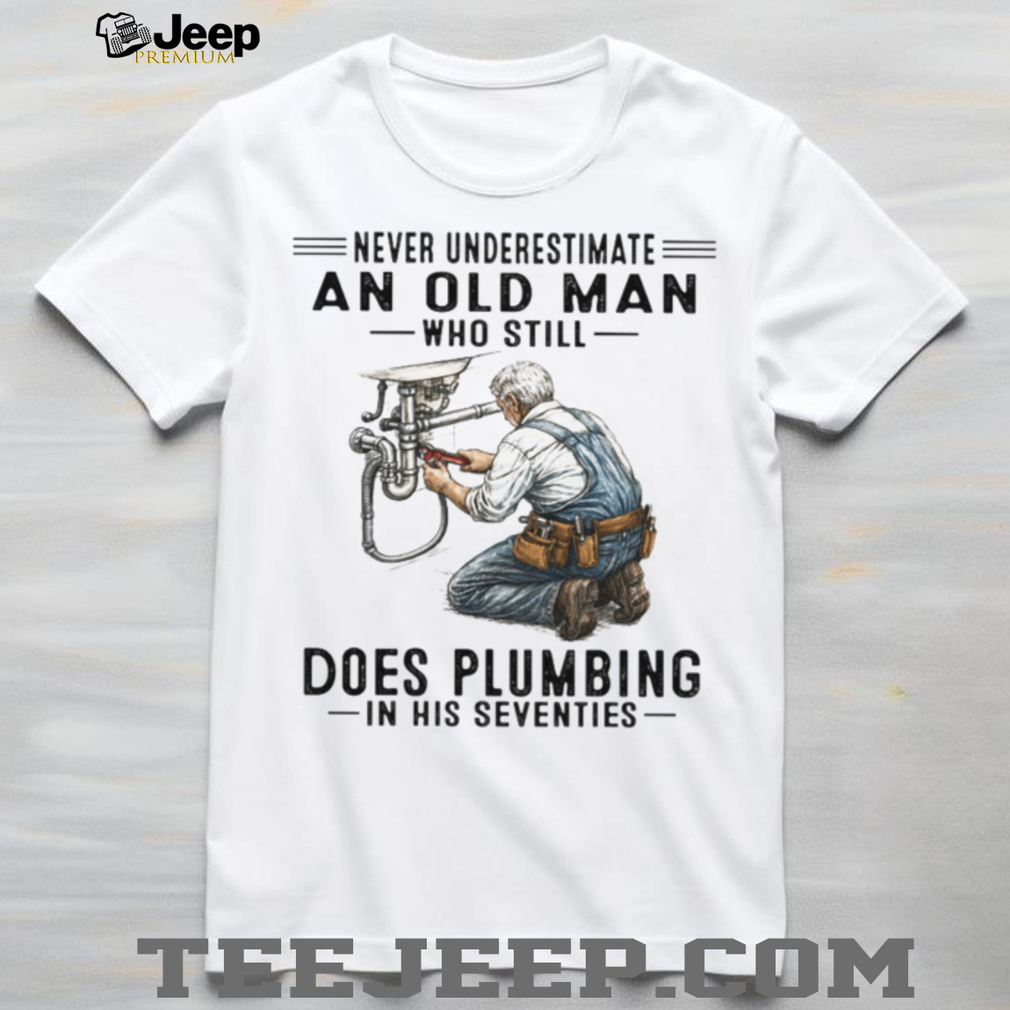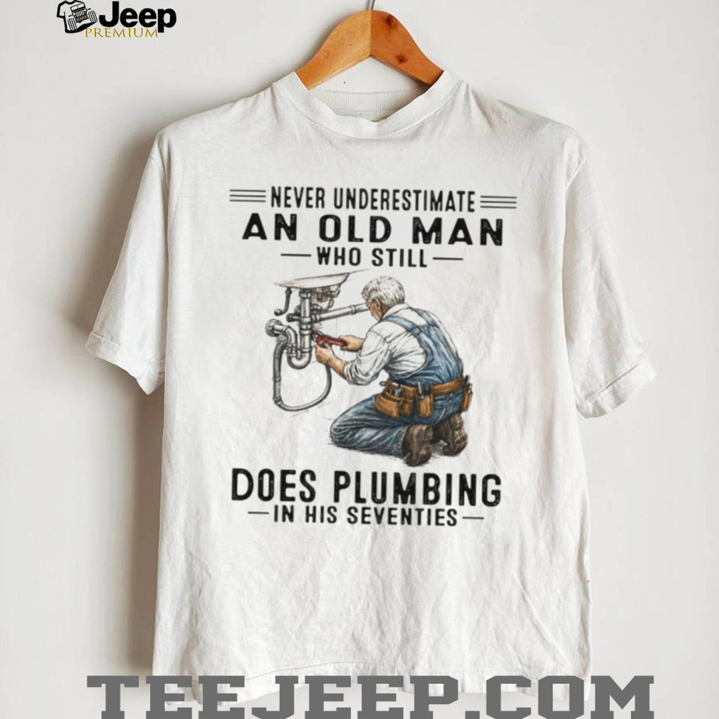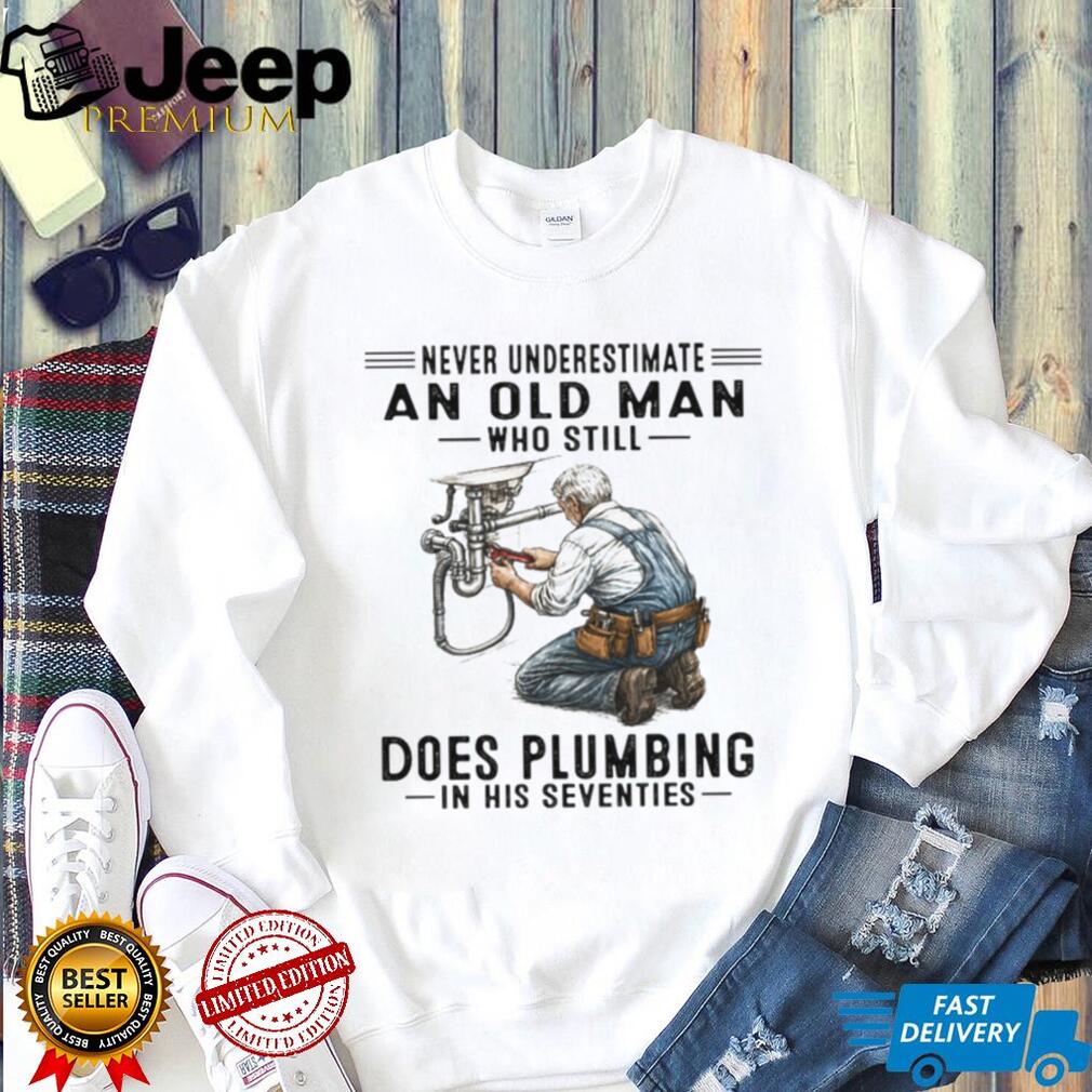 (Never Underestimate An Old Man Who Does Plumbing Plumber Gift T Shirt)