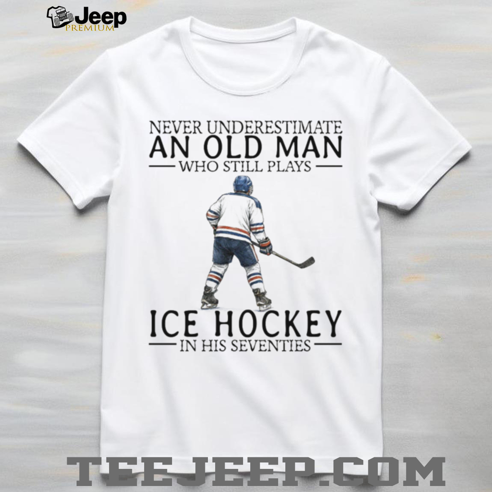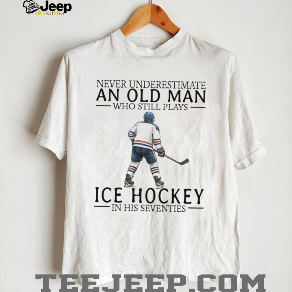 👕 About Never Underestimate An Old Man Who Plays Ice Hockey In His Seventies T Shirt