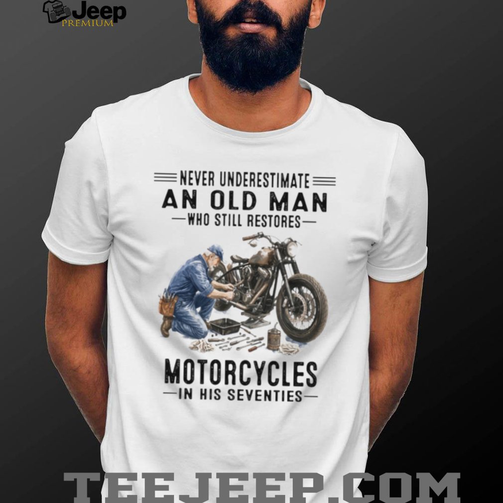 (Never Underestimate An Old Man Who Restores Motorcycles 70s T Shirt)