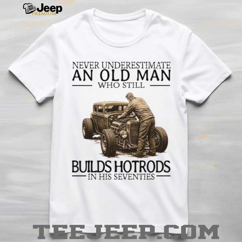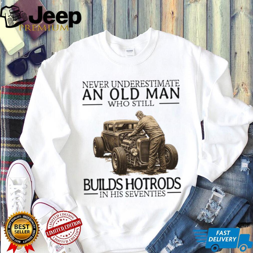 (Never Underestimate An Old Man Who Still Builds Hotrods In His Seventies T Shirt)Never Underestimate An Old Man Who Still Builds Hotrods In His Seventies T Shirt