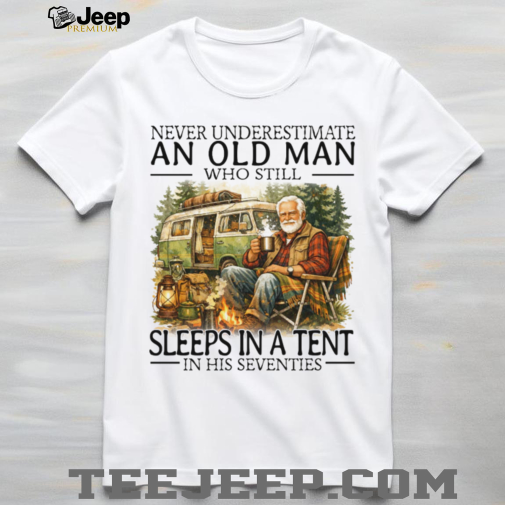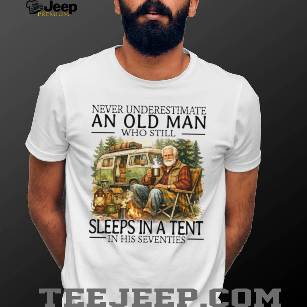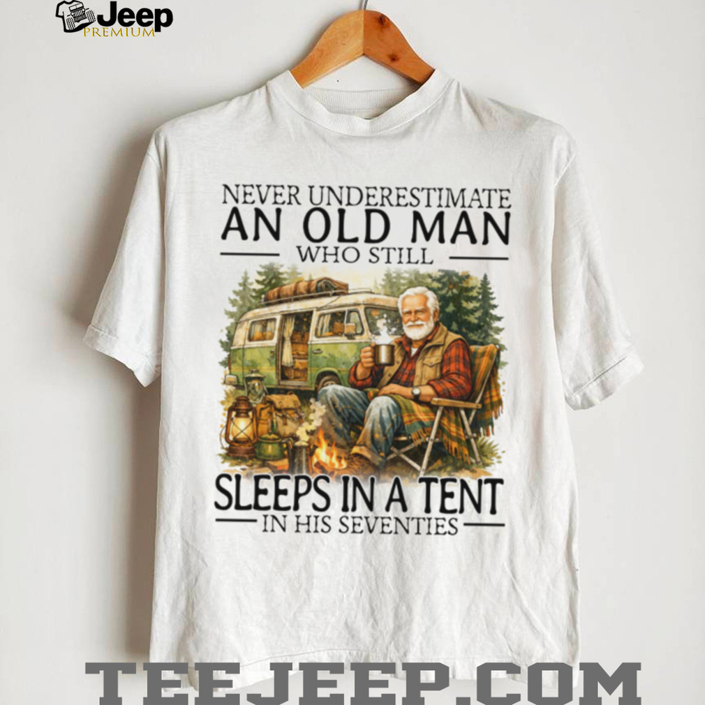 👕 About Never Underestimate An Old Man Who Still Sleeps In A Tent In His Seventies T Shirt