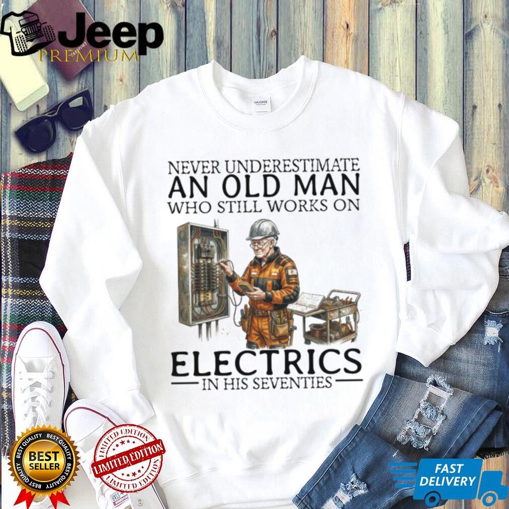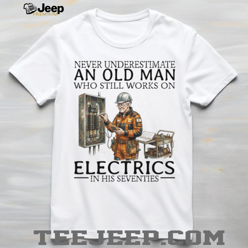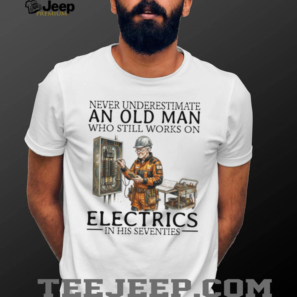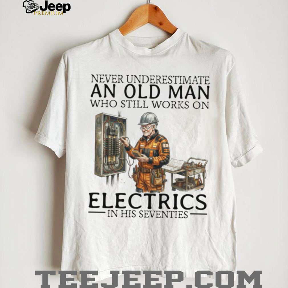 👕 About Never Underestimate An Old Man Who Still Works On Electrics In His Seventies T Shirt