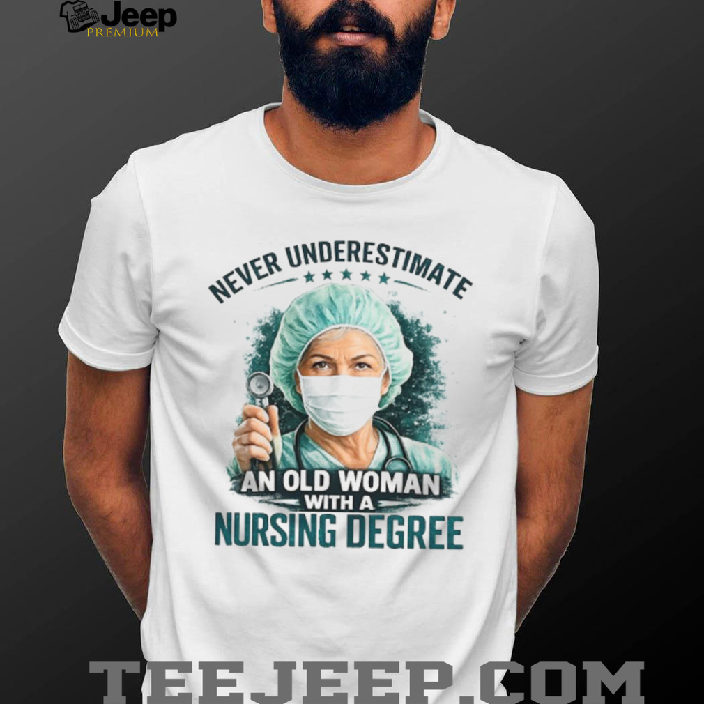 (Never Underestimate An Old Woman With A Nursing Degree Registered Nurse Gift Tee)Never Underestimate An Old Woman With A Nursing Degree Registered Nurse Gift Tee, Treat yourself or make a great gift for your loved ones