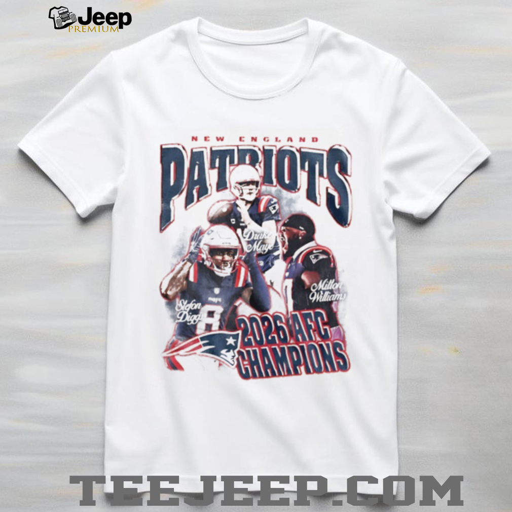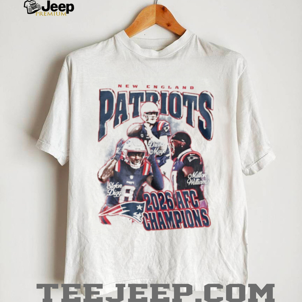 (New England Patriots 2026 AFC Champions Drake Maye Graphic Tee)While the Saturday slate is packed, the most anticipated debut of the weekend remains Drake Maye leading the Patriots against the Chargers tomorrow night. Maye’s statistical profile—leading the league in completion percentage and air yards per attempt—has made him the frontrunner for MVP. Fans across New England are preparing for a prime-time blackout at Gillette Stadium, with record sales of custom “Maye-VP” New England Patriots 2026 AFC Champions Drake Maye Graphic Tee being reported across the region. The Chargers’ defense, led by Derwin James, will bring a heavy zone scheme to test the young QB, but with Mike Vrabel’s playoff experience and a healthy Milton Williams back on the defensive line, the Patriots are confident they can move one step closer to New England Patriots 2026 AFC Champions Drake Maye Graphic Tee.
