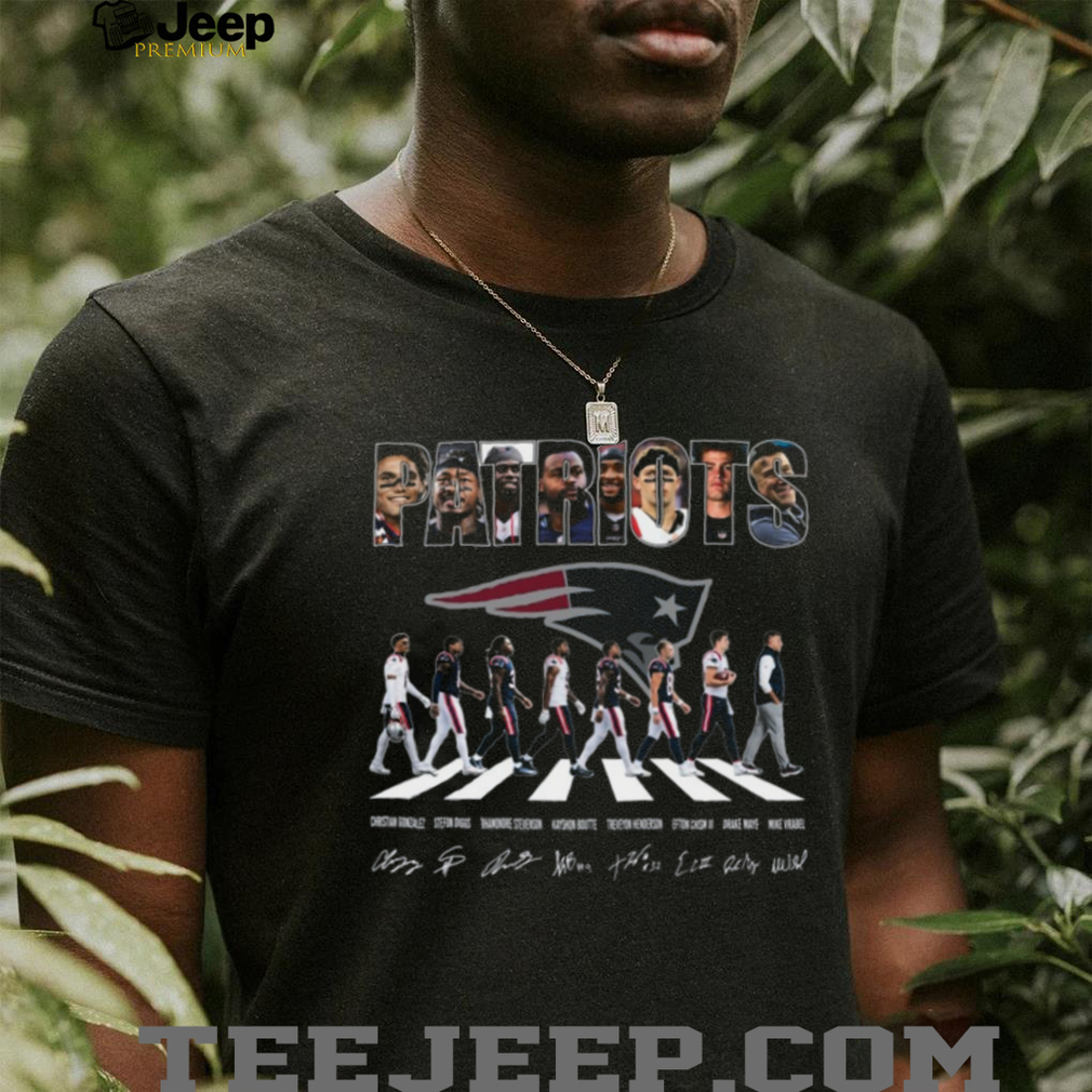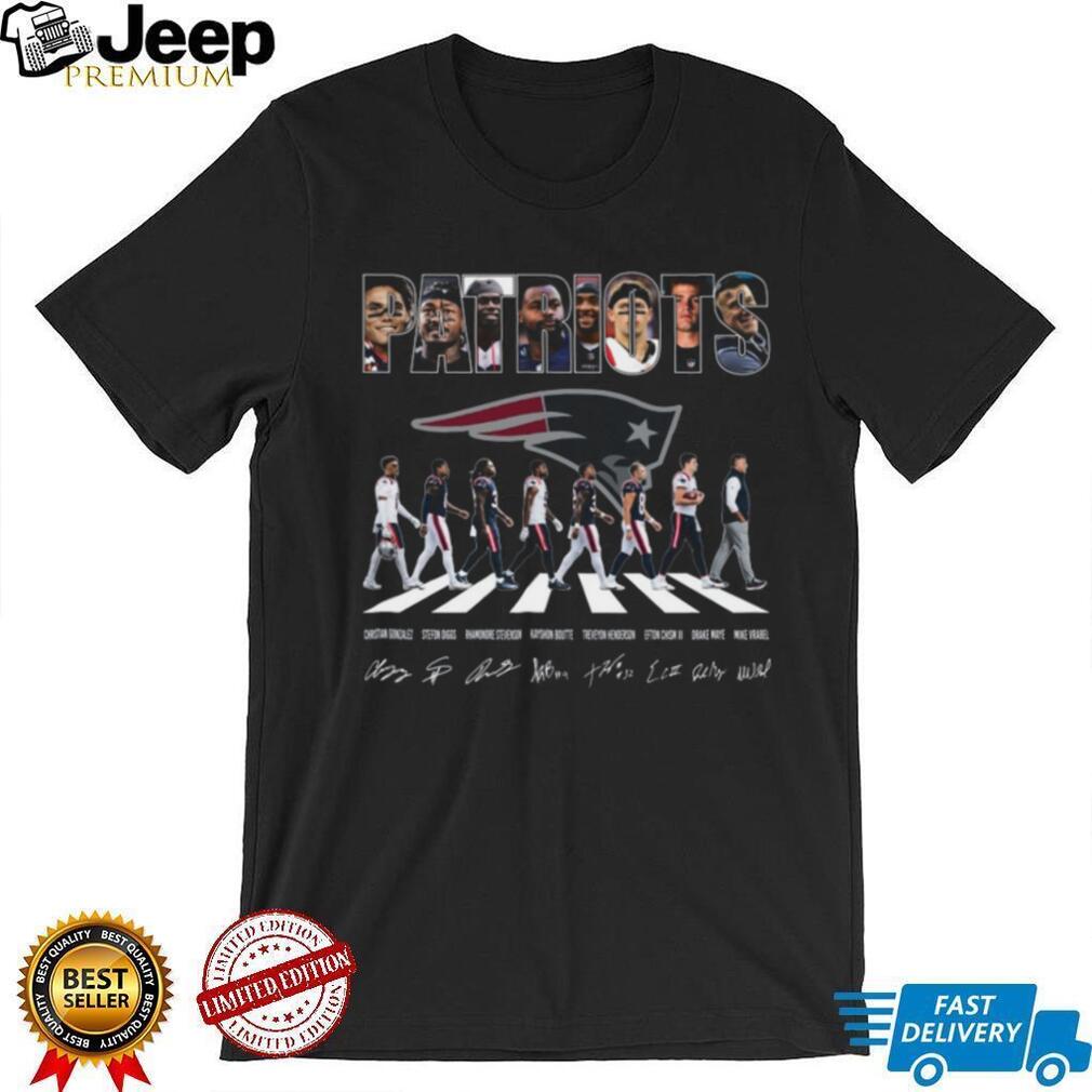 Rep your New England Patriots fandom in style with this Abbey Road crosswalk parody tee. Featuring team mascots and player signatures in a fun retro design, it’s perfect for tailgates, watch parties, or everyday wear. Soft, comfortable fit with vibrant, long-lasting print.