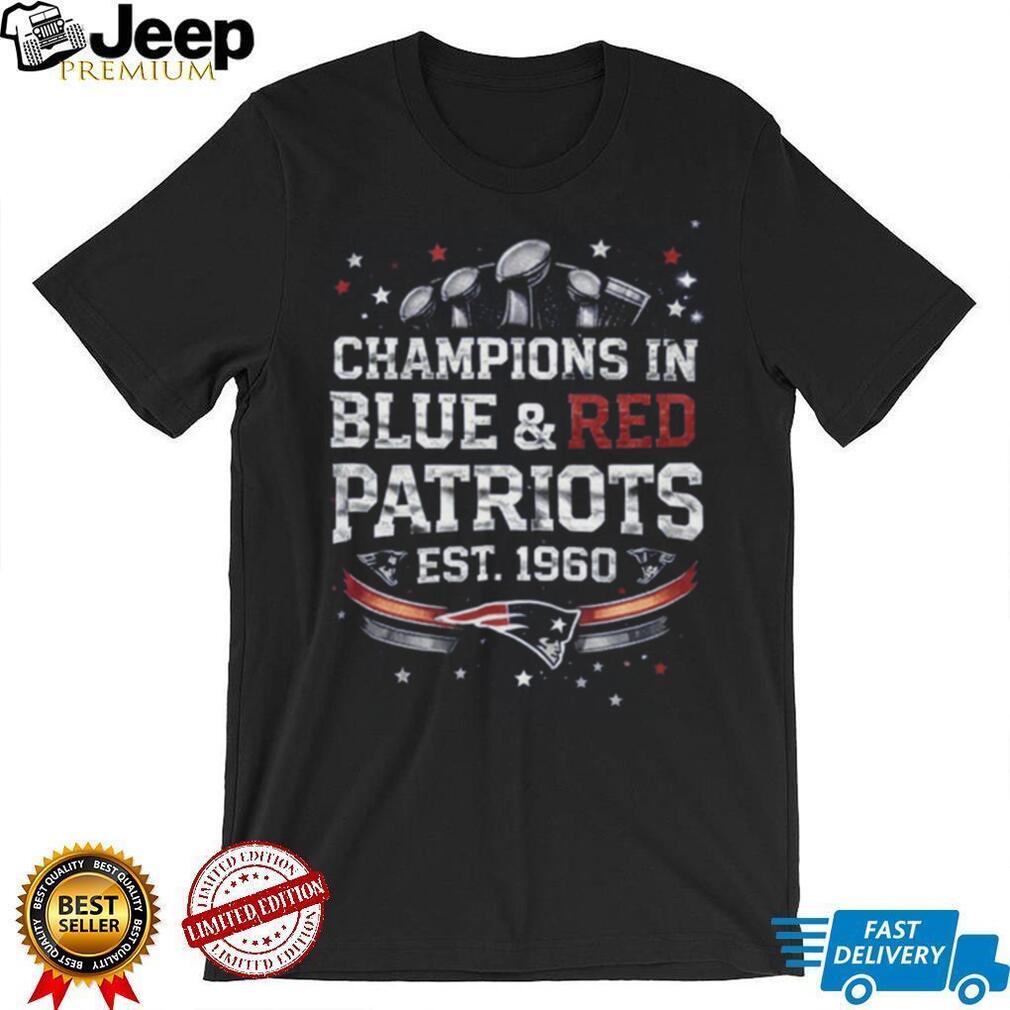 (New England Patriots Champions in Blue and Red Est. 1960 Vintage T Shirt)New England Patriots Champions in Blue and Red Est. 1960 Vintage T Shirt, Treat yourself or make a great gift for your loved ones