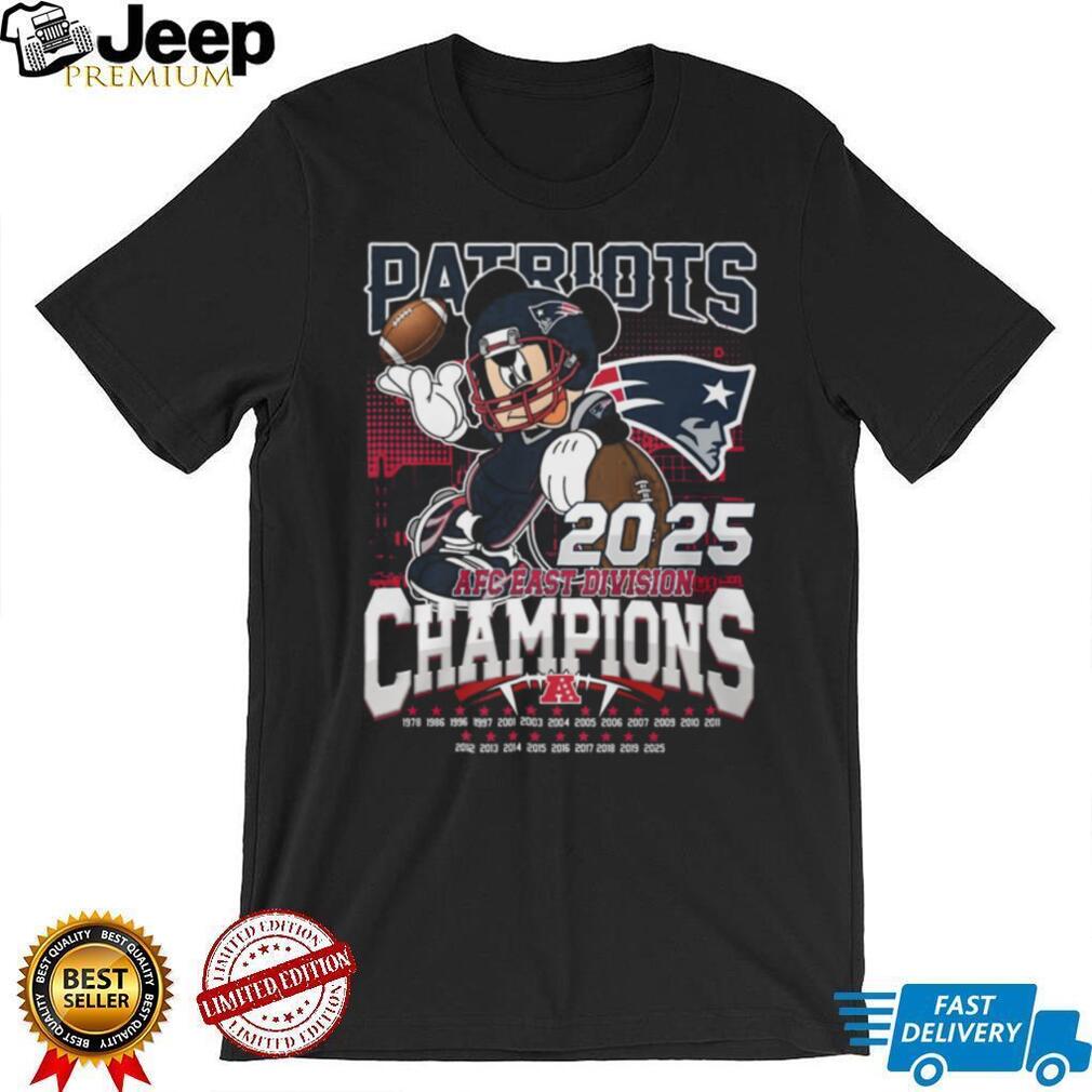 👕 About New England Patriots Mickey Mouse 2025 AFC East Division Champions T Shirt