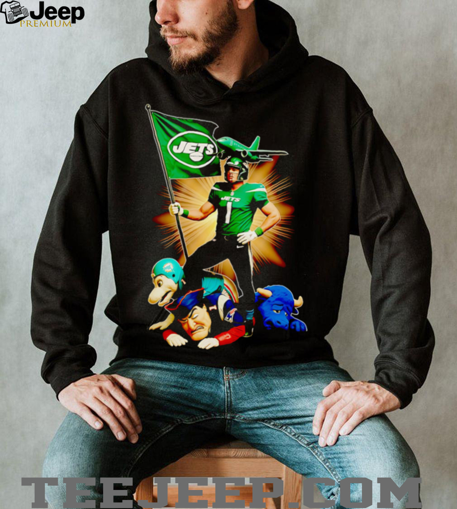 The “New York Jets mascot standing with flag shirt” is more than just a piece of merchandise; it’s a profound symbol of identity for any true Jets fan. It directly addresses the user’s primary search intent to find apparel that expresses their allegiance to the New York Jets. The design perfectly captures the essence of pride and steadfast support, featuring a mascot (representing the team’s spirit) boldly displaying the team flag. This visual representation serves as a powerful rallying point, connecting wearers to the vast and passionate community of Jets supporters. Whether attending a game, watching from home, or simply going about their day, this shirt communicates a deep-seated connection to the team’s history, its iconic colors, and the shared hope for future victories. It’s an emotional appeal that resonates with the core values of fandom: community, resilience, and unwavering belief in the “Green and White.”