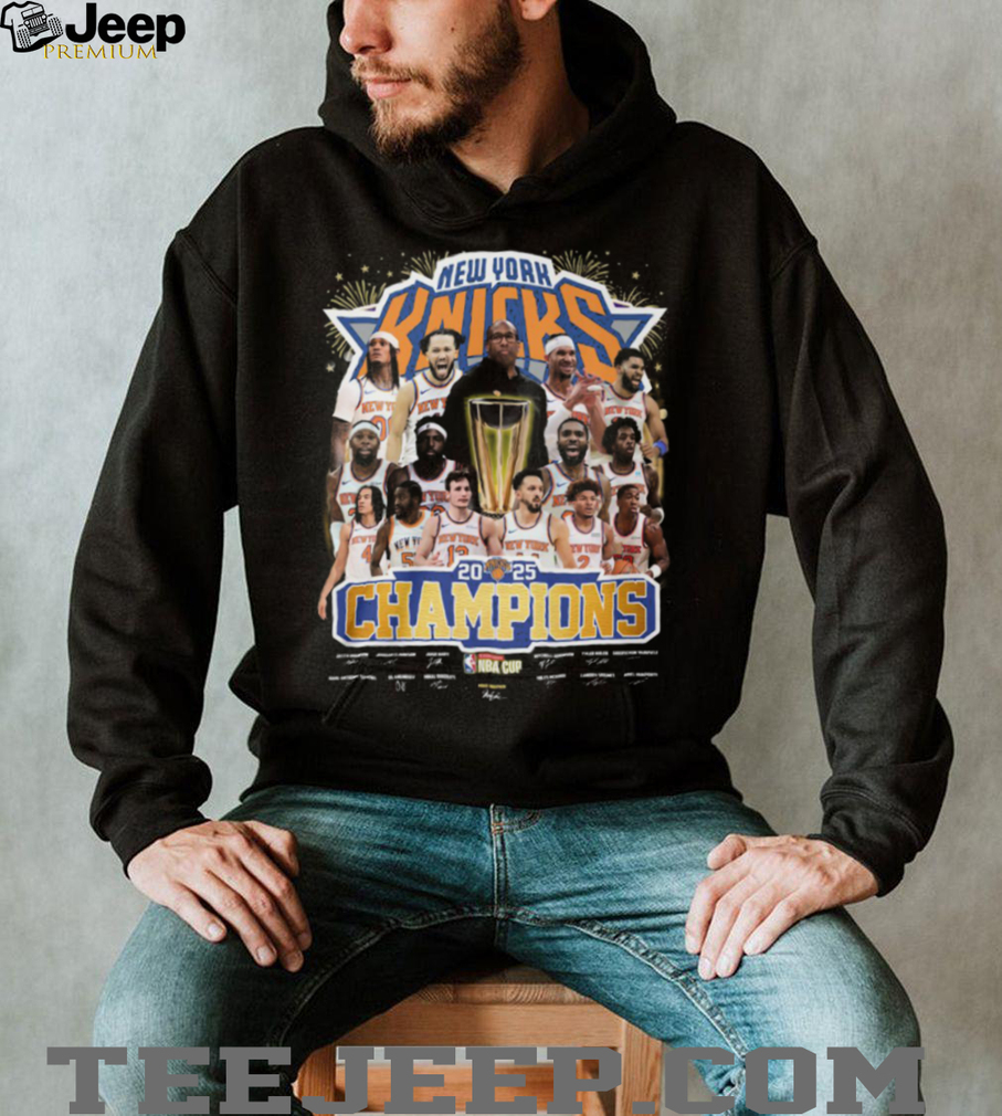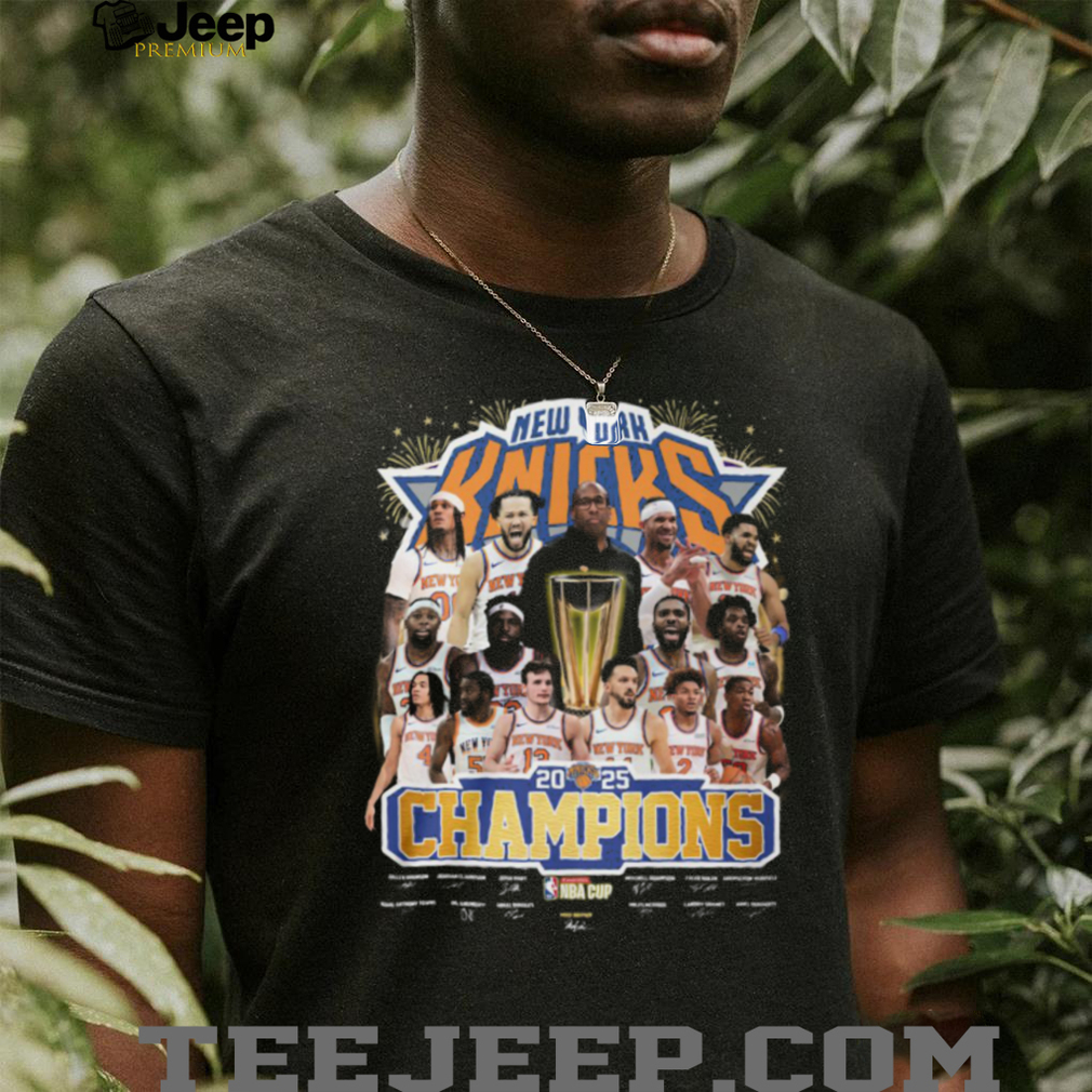 👕 About New York Knicks 2025 NBA Cup Champions Roster Signatures T Shirt