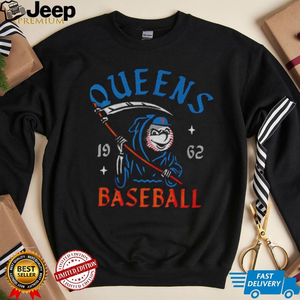 The **New York Mets** officially began their journey in **1962**, famously losing a record-setting 120 games in their inaugural season. This notorious start, though painful at the time, ironically forged a unique bond with their loyal fanbase, who embraced the team’s “lovable loser” identity. **Mr. Met**, widely considered the first live-action mascot in MLB history, debuted in team publications in 1963 and in person in 1964, quickly becoming a symbol of the team’s quirky charm and enduring spirit. The inclusion of “1962” on this shirt directly references this foundational, albeit challenging, year. The “Reaper” imagery, typically associated with death or a decisive ending, in this context might playfully symbolize the “death” of opposing teams’ hopes, or perhaps a tongue-in-cheek reference to the early Mets’ knack for “reaping” losses. If you like to zoom in this way, you can also refer to some popular designs that feature other historic sports team moments, capturing the spirit of a foundational era.