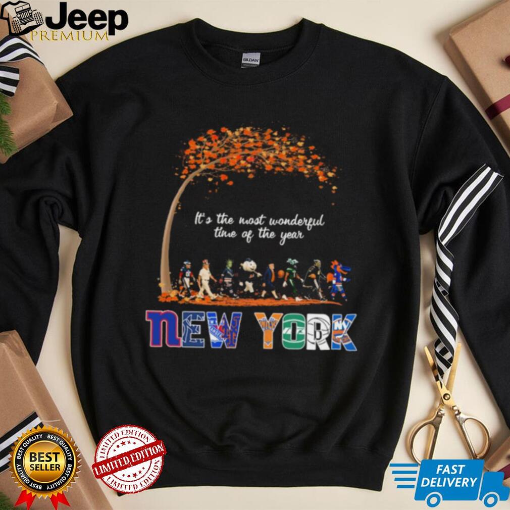 Celebrate New York Sports with the “New York Sports Teams Mascot Abbey Road It’s The Most Wonderful Time Of The Year Shirt”