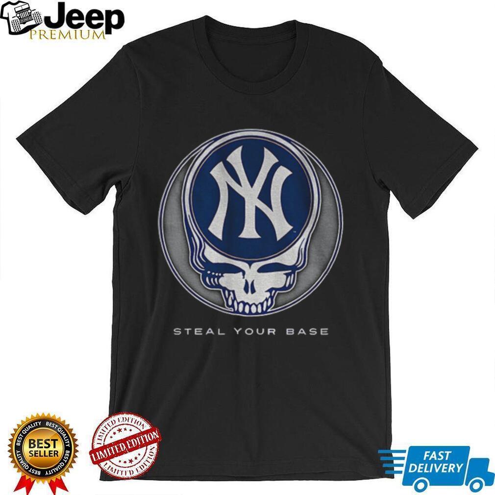 Catch a vibe that’s both baseball and psychedelic with this New York Yankees Steal Your Base Trending Shirt. It mashes up the iconic Yankees logo with the Grateful Dead’s skull, creating a must-have for fans who love both. Show off your unique style and team spirit with this eye-catching tee.