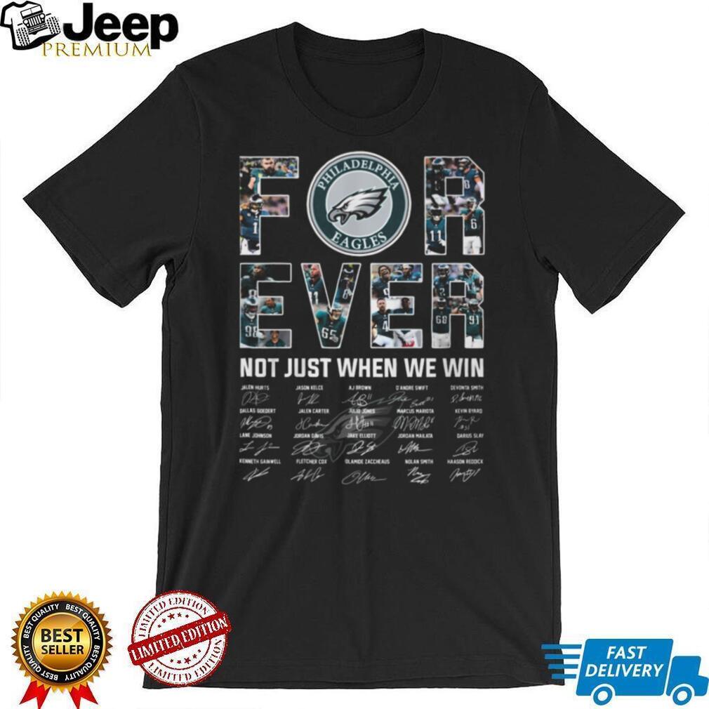 That male dancers are all gay—so why are there so many dancer couples with children? That they are unintelligent—unfortunately that misconception has to do with the physicalness of dance, but dance training actually develops neural connections better than other physical training forms. It is also not unusual that dancers get university degrees or design their own NFL Philadelphia Eagles Roster Collage and Player Signatures Tee for rehearsals while they are still performing and go on to other occupations like physical therapist, doctors and investing. That the female dancers are weak and frail, but despite their perhaps light appearances, dancers are generally quite strong, both physically and mentally. You will find dancers in the training room lifting weights and cross training nowadays like most elite athletes. Yes, most dancers can do the splits, but there is so much more than that in ballet. No, that ballet is not a hobby, but a demanding profession which requires dedication and discipline.