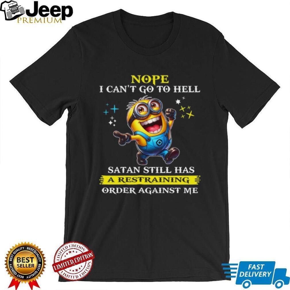 👕 About Nope I Can't Go To Hell Satan Still Has A Restraining Order Against Me T Shirt