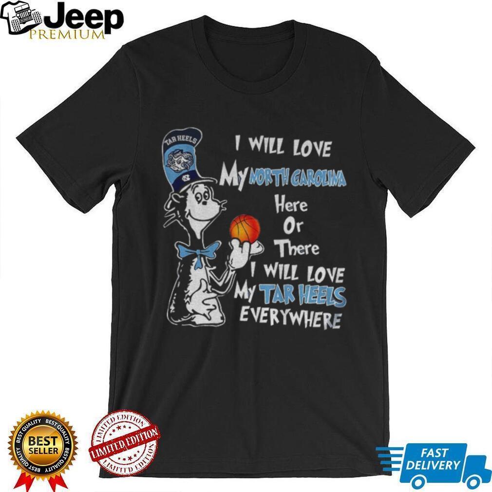 👕 About North Carolina Tar Heels I will love my North Carolina here or there I will love my Tar Heels everywhere shirt
