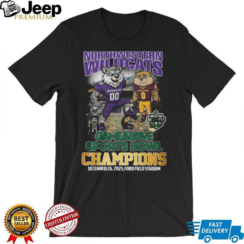 Northwestern Wildcats vs Central Michigan Chippewas GameAbove Sports Bowl Champions 2025 T Shirt, Treat yourself or make a great gift for your loved ones