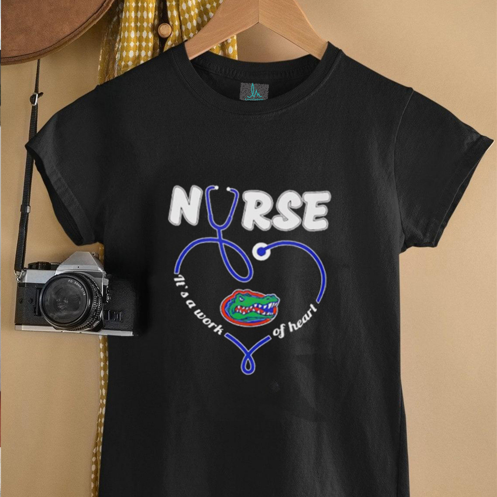 The “Nurse It’s a Work of Heart Florida Gators Shirt” is a piece of apparel that creatively blends the dedication and compassion of nursing professionals with the spirited support for the Florida Gators. This shirt serves as a dual expression of admiration, highlighting the heartfelt nature of nursing and the unwavering loyalty to the Gators. It’s designed to resonate with nurses who are also passionate Florida Gators fans, individuals who appreciate the intersection of healthcare and sports, and those who seek to express their multifaceted identities. The design would prominently feature the phrase “Nurse It’s a Work of Heart,” along with the Florida Gators logo and team colors, potentially incorporating medical symbols like a stethoscope or heart.
