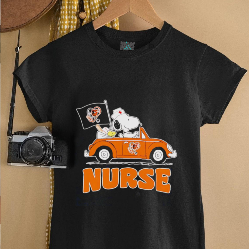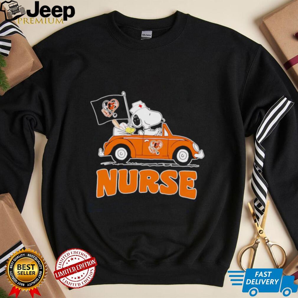 Batter up, baseball fans! Get ready for a dose of adorable team spirit with the “Nurse Snoopy and Woodstock Driving Car Baltimore Orioles” shirt! This isn’t just your average fan gear; it’s a delightful mashup of your favorite Peanuts pals and the beloved Baltimore Orioles. Imagine Snoopy, looking quite official in his nurse’s hat, chauffeuring Woodstock, presumably en route to Camden Yards to cheer on the Birds. It’s the perfect way to show your love for baseball with a touch of whimsical charm that’s sure to bring a smile to everyone’s face.