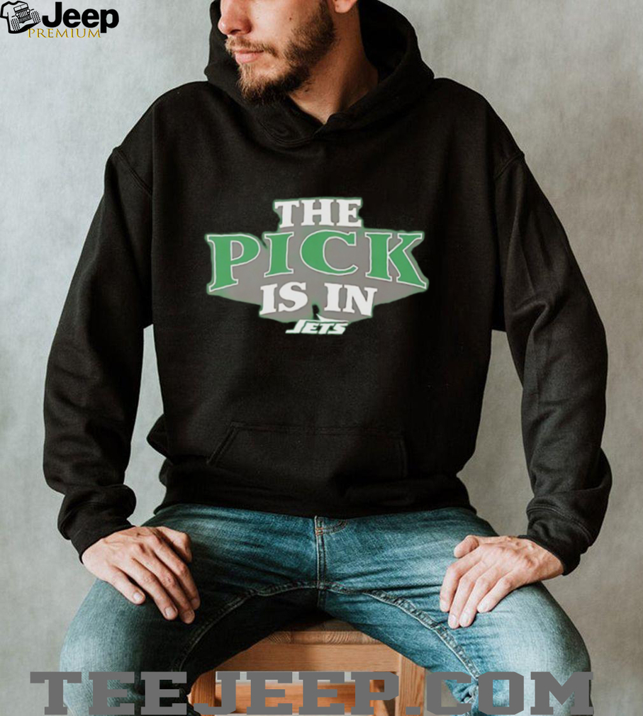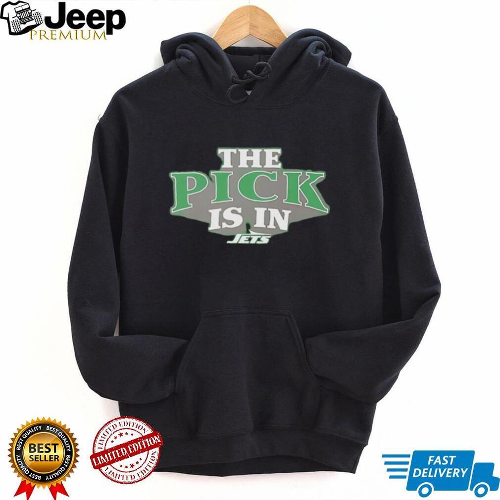 Gang Green Draft Day is here! The Jets declare ‘The Pick Is In’ on this bold black fan tee. Hope is alive and the future is bright for Jets Nation.