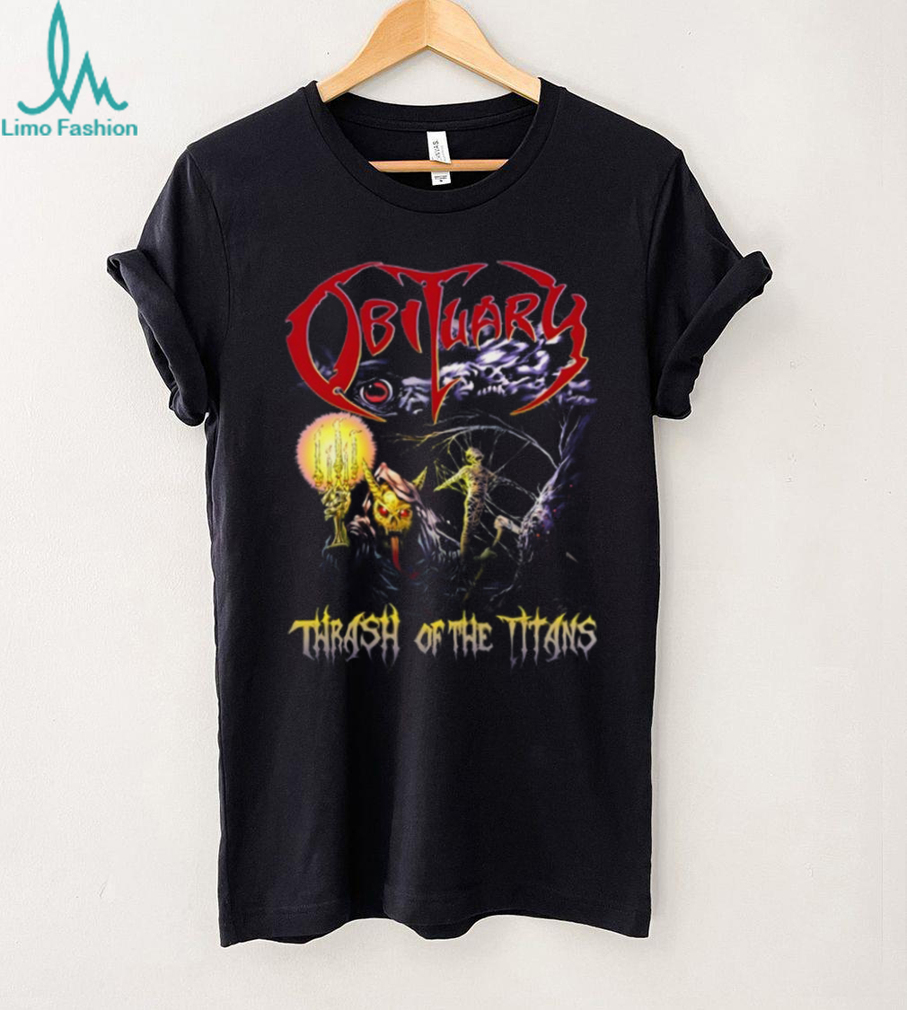 ()Obituary Band Thrash of the Titans Skeleton Fantasy Art T Shirt, Treat yourself or make a great gift for your loved ones