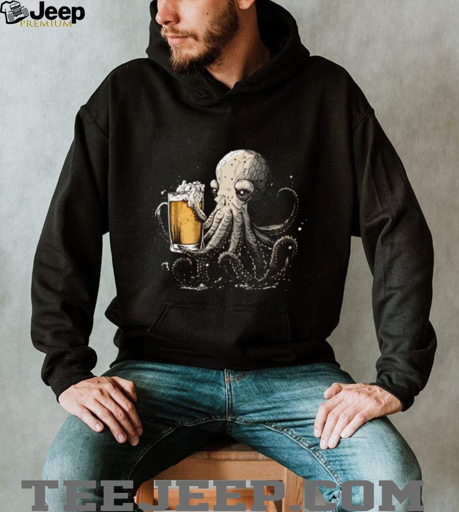 ()Octopus Holding Beer Mug Funny Nautical Illustration T Shirt, Treat yourself or make a great gift for your loved ones
