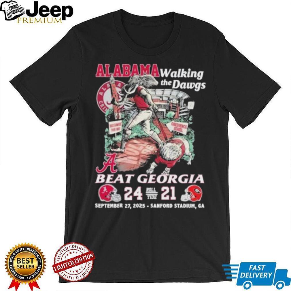 Roll Tide! Celebrate Alabama’s victory over Georgia with this official “Walking The Dawgs” score shirt! Relive the excitement of the 24-21 win and show your Crimson Tide pride. Perfect for any Alabama fan who wants to commemorate this epic victory!