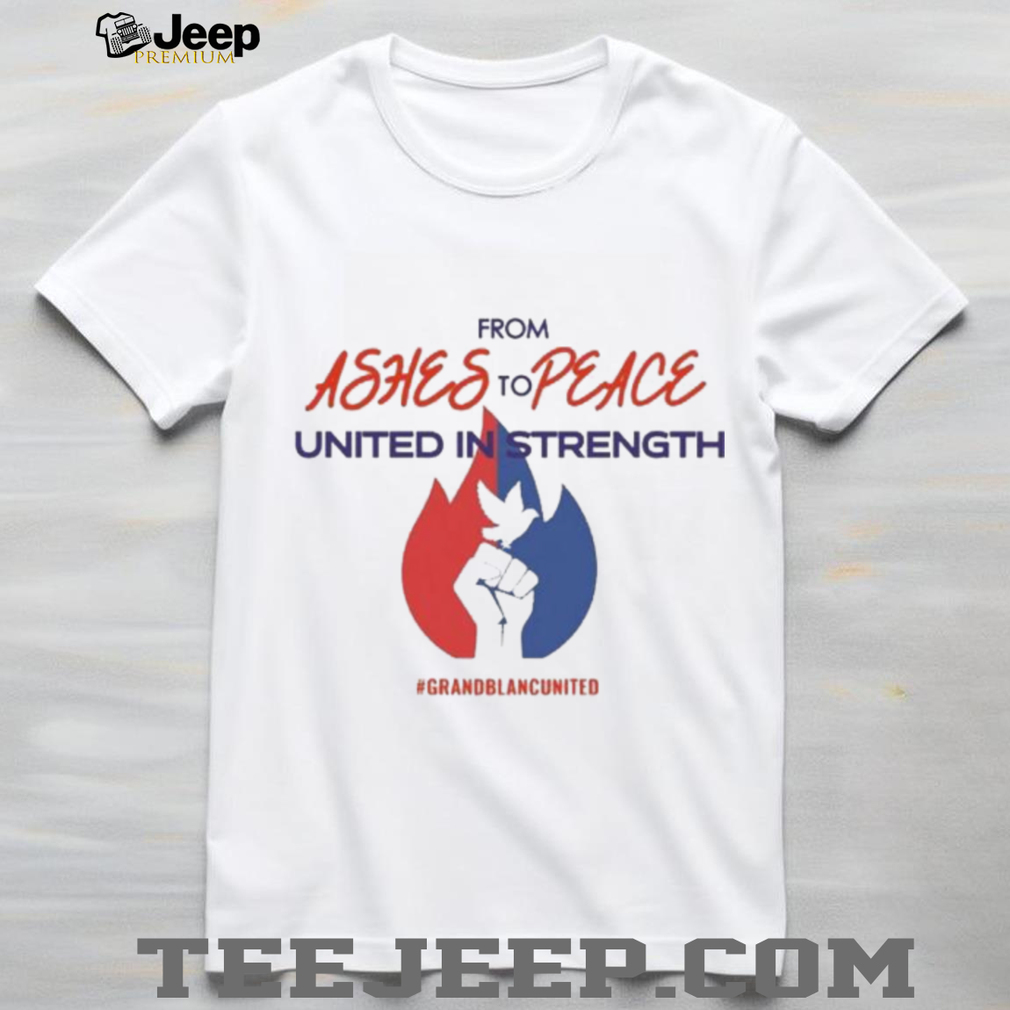 This shirt is perfect for supporters of From Ashes To Peace, residents of Grand Blanc, Michigan, and anyone who believes in the power of unity and strength. Wear it to community gatherings, charity events, or any occasion where you want to show your support for a positive message. Searching for a meaningful gift that gives back? This shirt is a great way to support From Ashes To Peace and spread a message of hope.