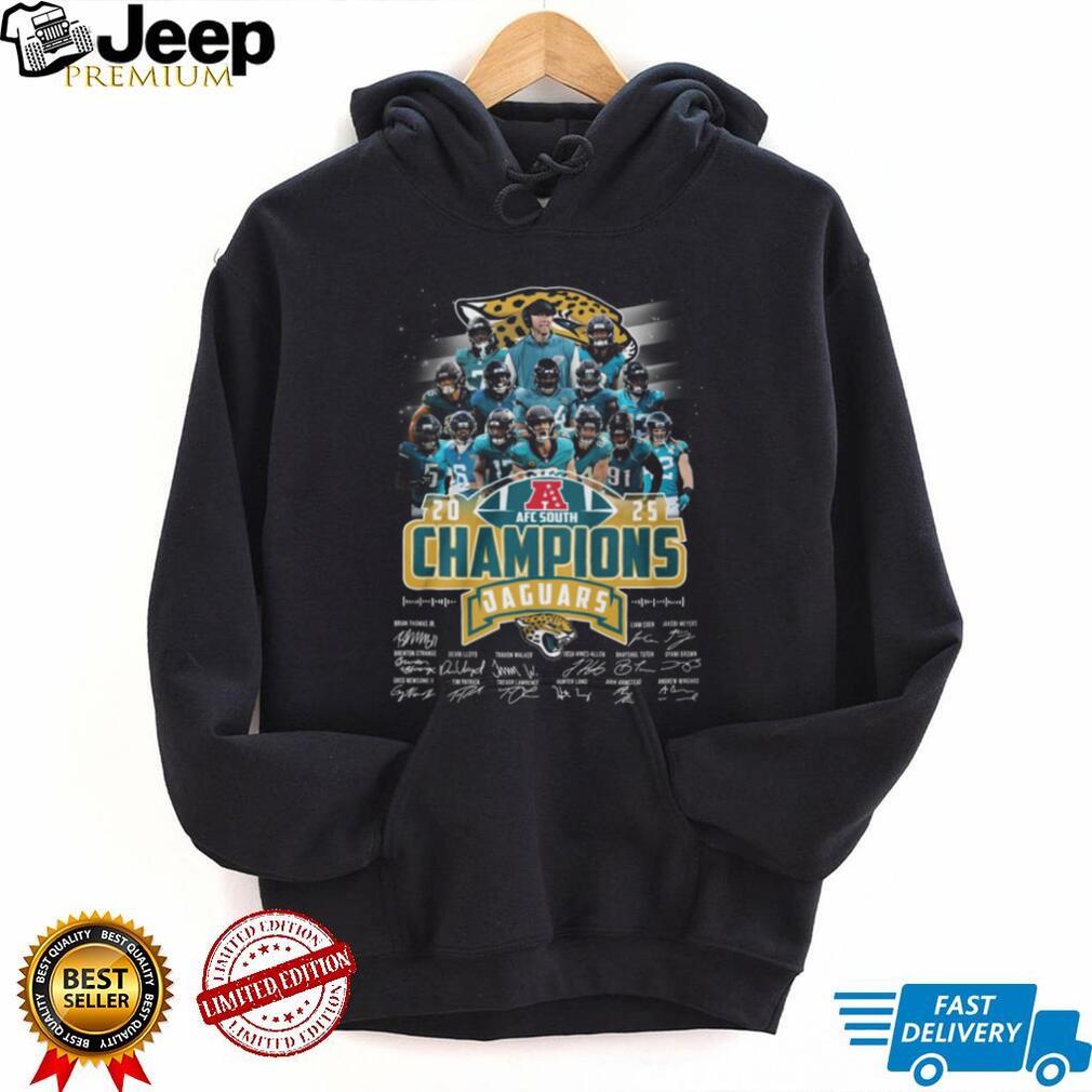 The triple jump is one of the most physically demanding events in track and field due to the extreme forces placed on the joints. At the moment of landing after the initial hop, an athlete’s leg must absorb a force equivalent to nearly ten times their body weight. To manage this impact, the athlete utilizes ‘stiffness’ in the ankle and knee. During practice, jumps performed in weighted Official Jacksonville Jaguars NFL AFC South Champions 2025 Players And Coach Signatures Shirt can help build the necessary eccentric strength and core stability required for the ‘step’ and ‘jump’ phases. The most successful jumpers minimize ‘ground contact time,’ effectively ‘bouncing’ off the surface before the energy is dissipated.