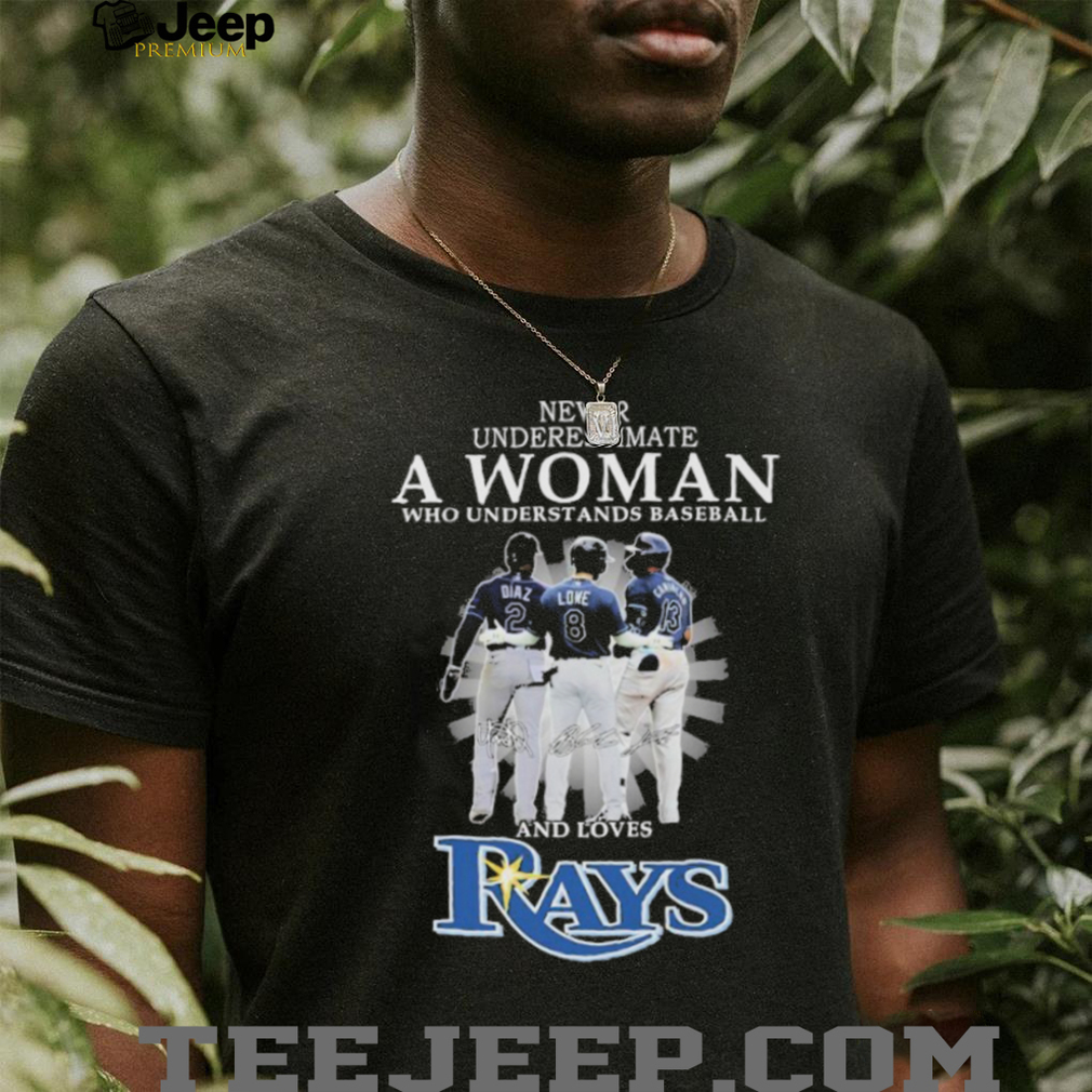 Hear that? It’s the sound of assumptions shattering! This Official “Never Underestimate A Woman Who Understands Baseball And Loves Tampa Bay Rays” signatures T-shirt is a stylish mic drop for all the brilliant baseball-loving women out there who bleed Rays blue. Imagine a design that’s both smart and spirited – maybe a clever graphic incorporating baseball elements with a touch of feminine flair, surrounded by the signatures of your favorite Tampa Bay players. This isn’t just a team tee; it’s a statement of knowledge and passion, a wearable reminder that fandom knows no gender. Sport this to Tropicana Field or your next watch party and watch as stereotypes get thrown out with the seventh-inning stretch!