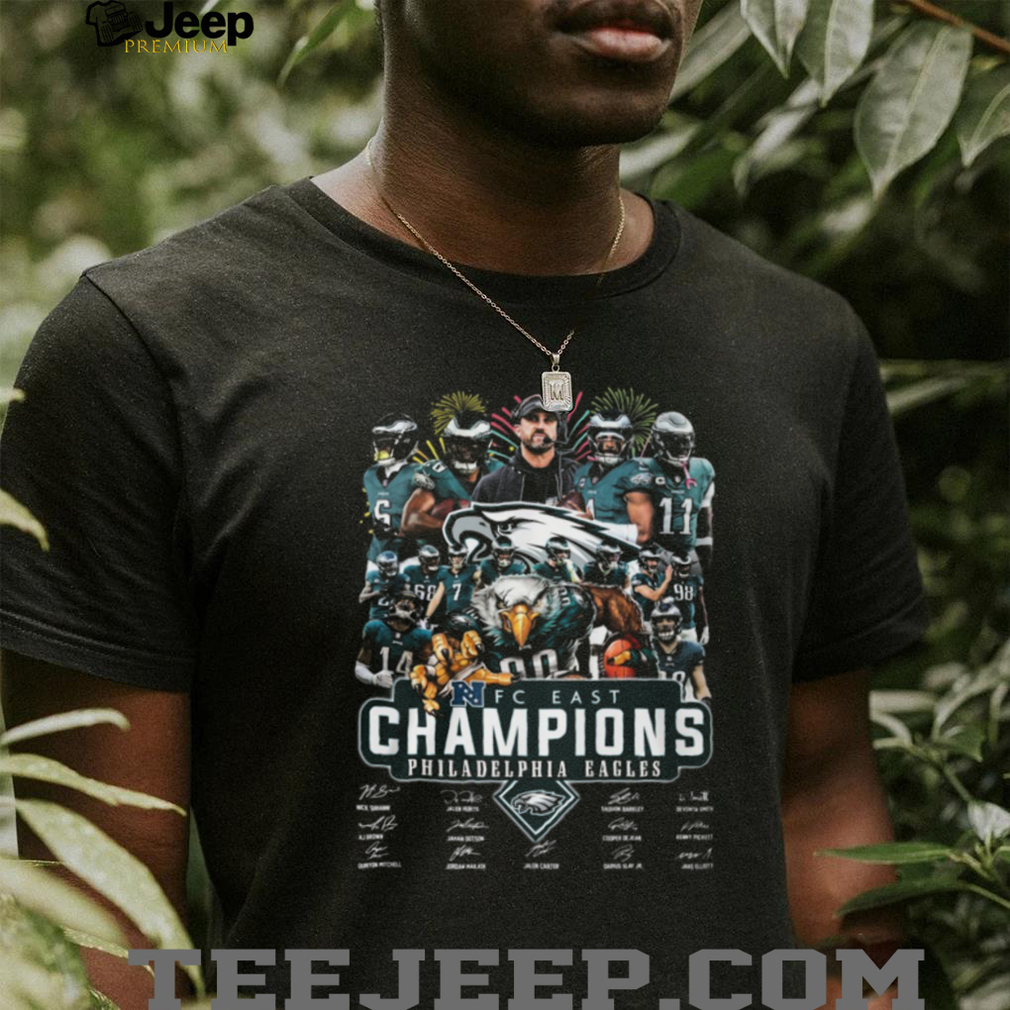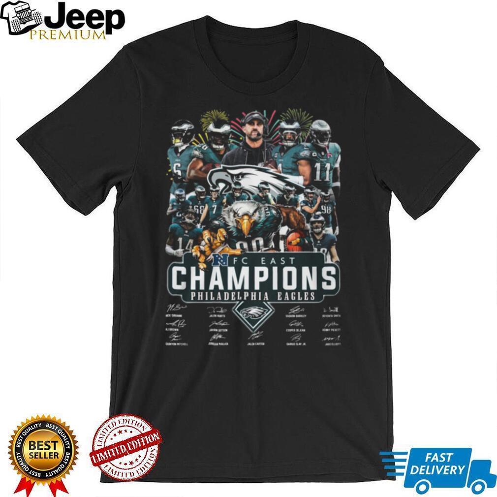 Trans women don’t hold any world records in women’s sports… After being allowed to compete in women’s sports for over 20 years. Trans women have never competed on the international stage for any of the major sports. There is no compelling evidence to say that trans women and girls win at disproportionate rates, or that they sell more Official Philadelphia Eagles 2023 2024 NFC East Champions Commemorative Tee than their peers. Trans women and girls always perform on par with cisgender athletes. A trans athlete’s performance would NEVER be newsworthy if done by a cisgender athlete. Research shows that after HRT for enough years, trans women’s performance is on par with cis women. For aspects that change little to no with hormones, it only matters if it matters for the given sport. For example, higher lung capacity is not useful for sprints, grip strength doesn’t matter for soccer, skeleton remaining unchanged doesn’t matter for a 5′4 trans woman in basketball.