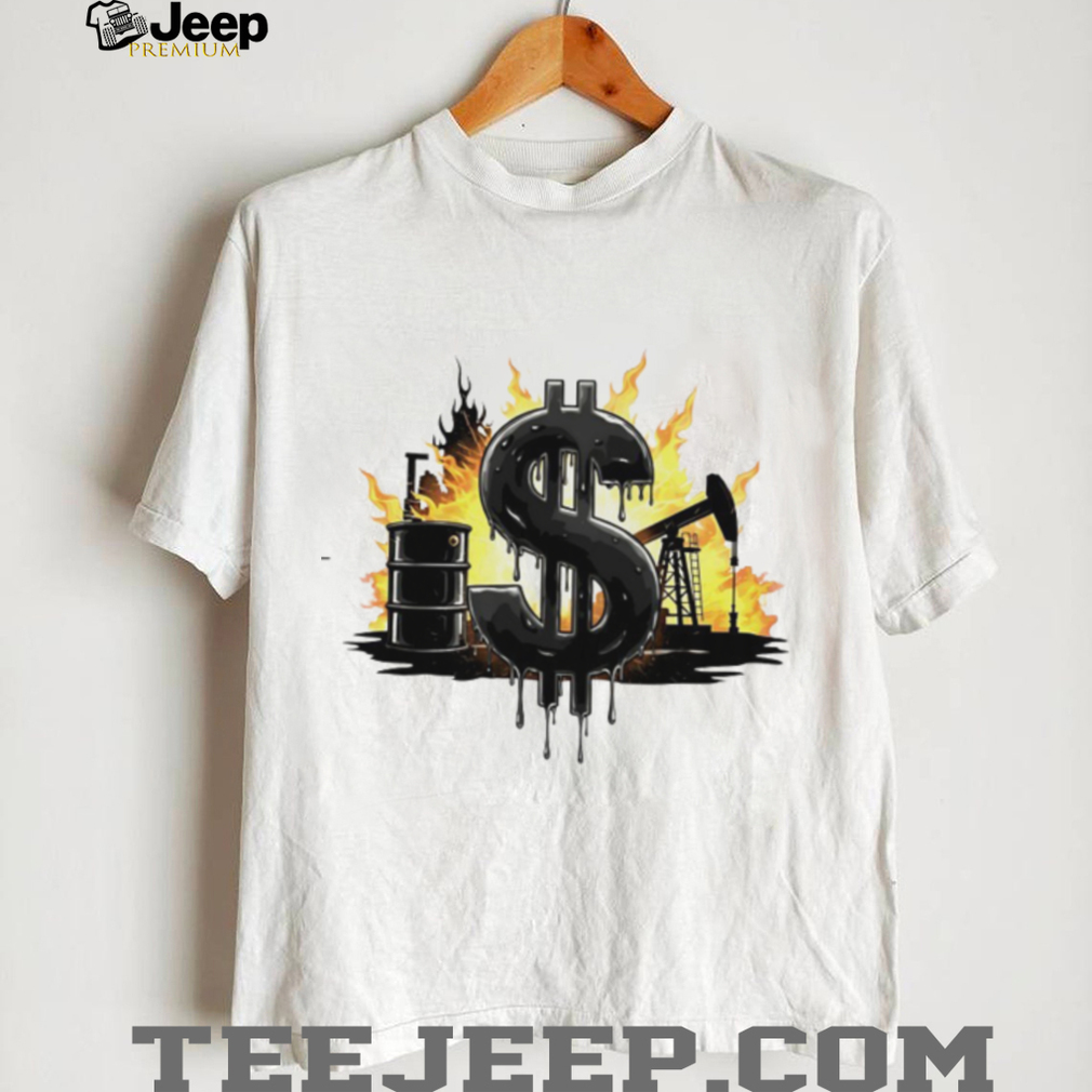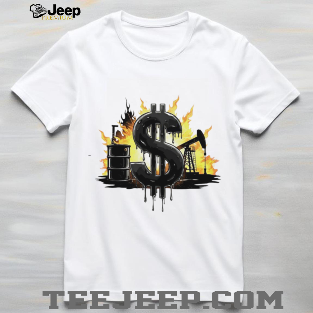 ()Oil Industry Money Dollar Sign Flame Graphic White T Shirt, Treat yourself or make a great gift for your loved ones