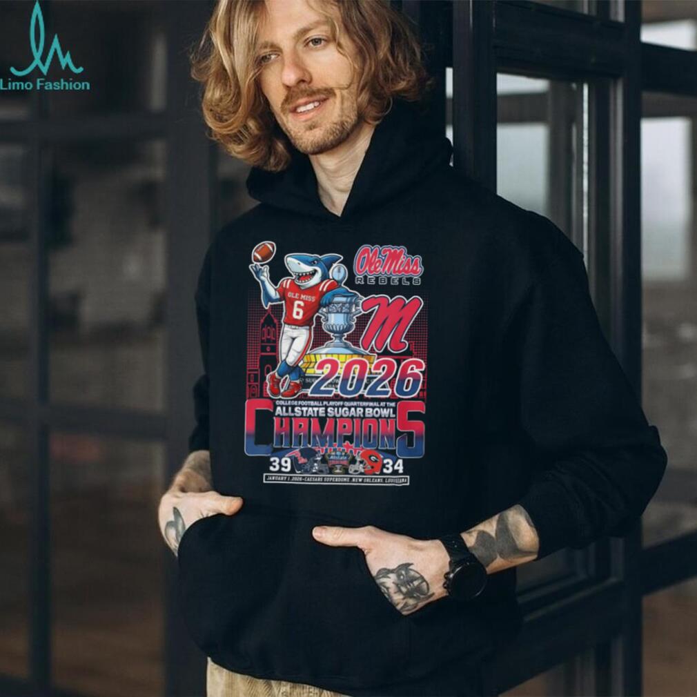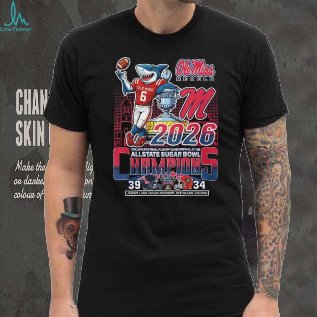 No matter how poor you are, you can play soccer if you can afford a ball. Basketball is also pretty cheap to play but while one can draw an outline of a soccer goal on the sand, you need at least to be able to put up a 10 foot hoop and backboard to play it properly. Maintenance of infrastructures in basketball is very difficult. You must have a specific field for it. African and Latin American children often play football in slums with ease, which is why they have been able to nurture some of the finest football gems. In basketball, size matters. The requirement in basketball is harsher. You have to be tall enough to play, which means dwarves can’t compete. Football is simple, you don’t have to be big to compete, you just need to be capable. In football, scoring is a matter of quality, because going into the net isn’t free. A major difference with basketball is, in football, there is a goalkeeper serving as Ole Miss Rebels 2026 Sugar Bowl Champions Football Victory T Shirt, which creates greater intensity. While there are a lot of big wins in footballing history, scoring in football isn’t as easy as basketball.