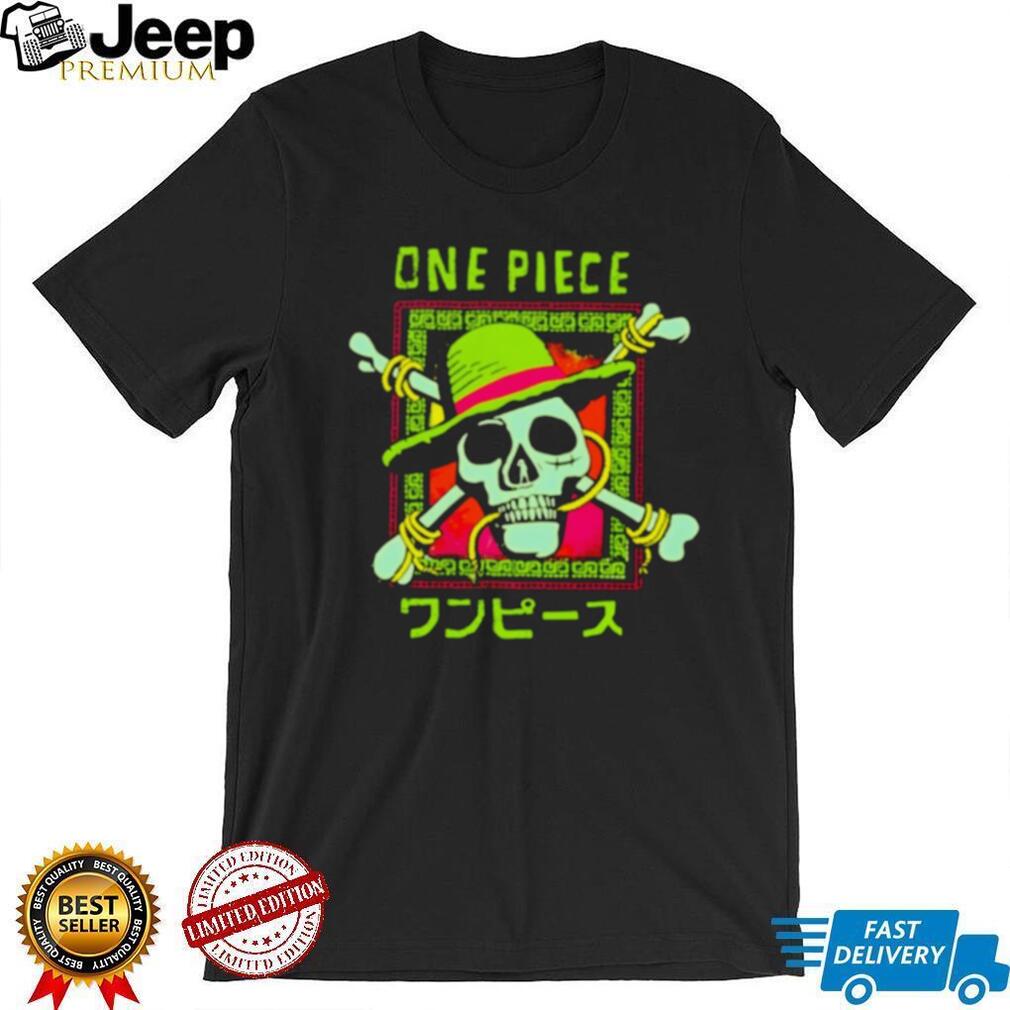 (One Piece Anime Luffy Straw Hat Jolly Roger Skull Graphic Black T Shirt)Apr 25