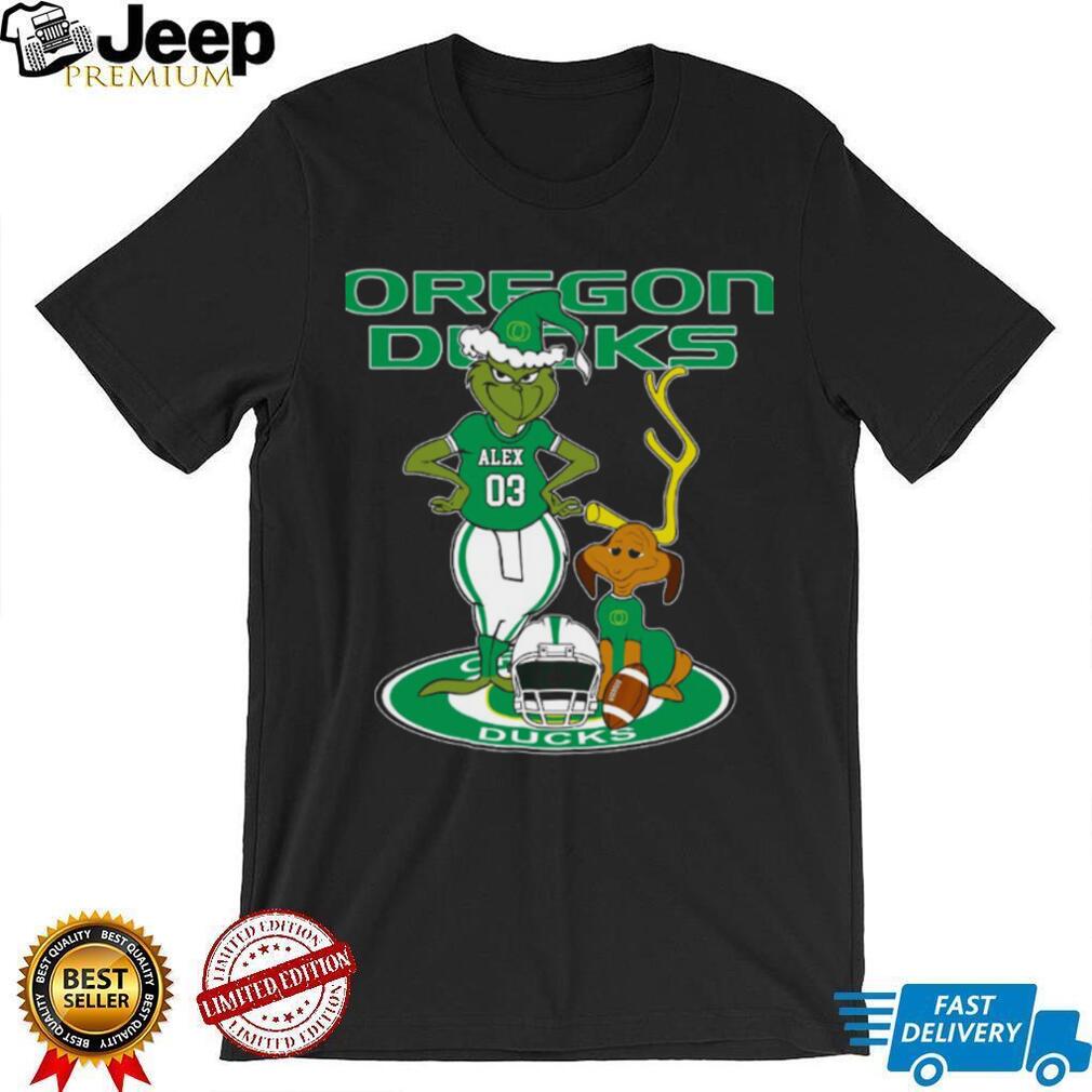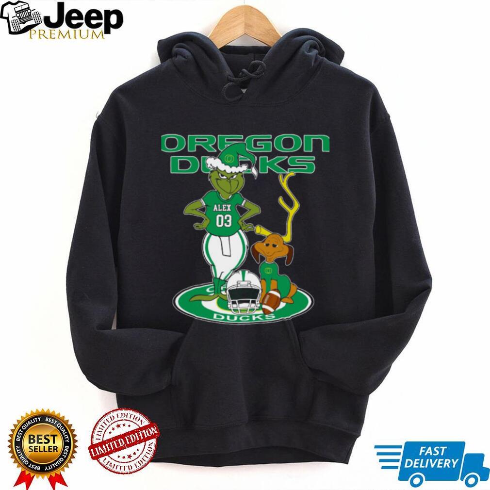 Get into the holiday spirit with this adorable Oregon Ducks Grinch with Dog Christmas Shirt! It’s a fun and festive way to support your team during the holiday season. This NCAA football tee is perfect for Oregon Ducks fans, and you can even personalize it with a custom name. Imagine the smiles and cheers you’ll receive when you show up to the next game or Christmas party in this unique tee!