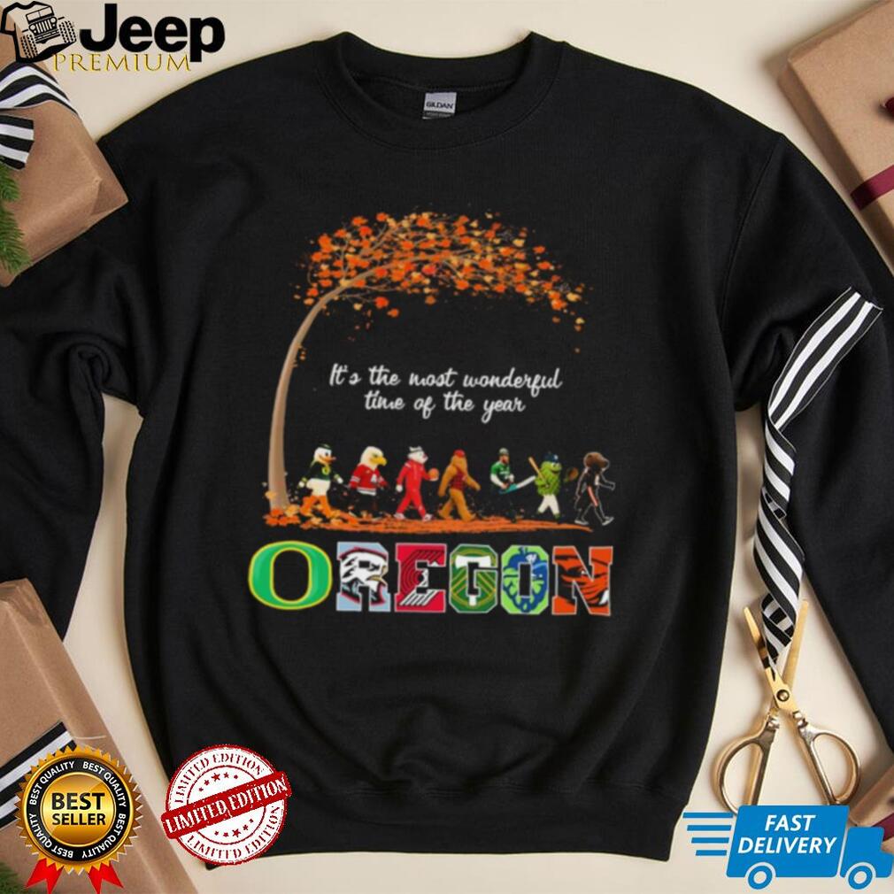 While Andy Williams’ “It’s The Most Wonderful Time Of The Year” typically conjures images of holiday cheer, its reimagining for Oregon sports fans is incredibly fitting. For many, the kickoff of football season, the start of basketball, or the hopeful anticipation of a deep playoff run genuinely signals a peak period of joy, excitement, and communal celebration. This shirt perfectly captures that sentiment – the shared anticipation, the roar of the crowd, the traditions with family and friends, and the collective hope for a championship. It’s about the deep emotional investment in every game, the thrilling highs of victory, and the unwavering resilience through every challenging season. This shirt doesn’t just combine two cultural touchstones; it synthesizes the sheer elation and strong community spirit that sports bring, making every game day truly feel like a festive occasion across Oregon. What happens next? You wear this shirt, and you instantly connect with thousands of other passionate fans who share the exact same unwavering loyalty and enthusiasm for their Oregon teams.