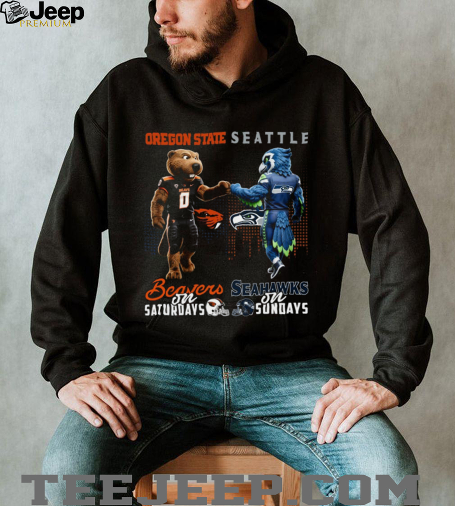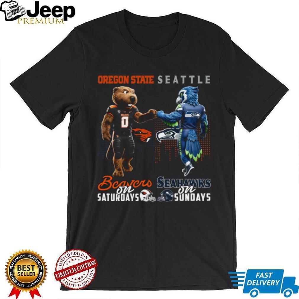 Can’t decide whether to cheer for the Oregon State Beavers or the Seattle Seahawks on game day? Now you don’t have to! This Oregon State Beavers & Seattle Seahawks Saturdays & Sundays Fan T Shirt lets you rep both teams with pride. It’s the perfect way to show your love for your favorite college and pro teams all weekend long. This shirt is a must-have for any true PNW sports fanatic.