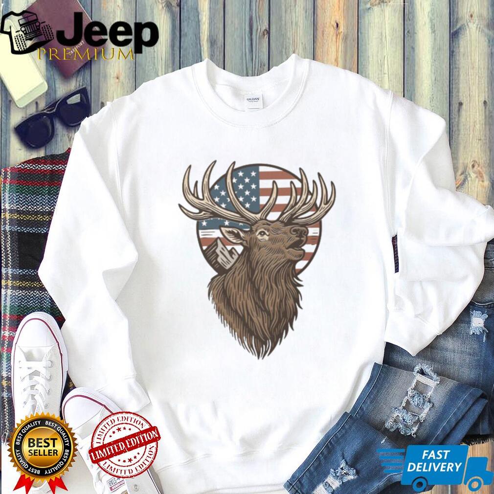 ()Patriotic American Flag Elk Mountain Wildlife Silhouette T Shirt, Treat yourself or make a great gift for your loved ones