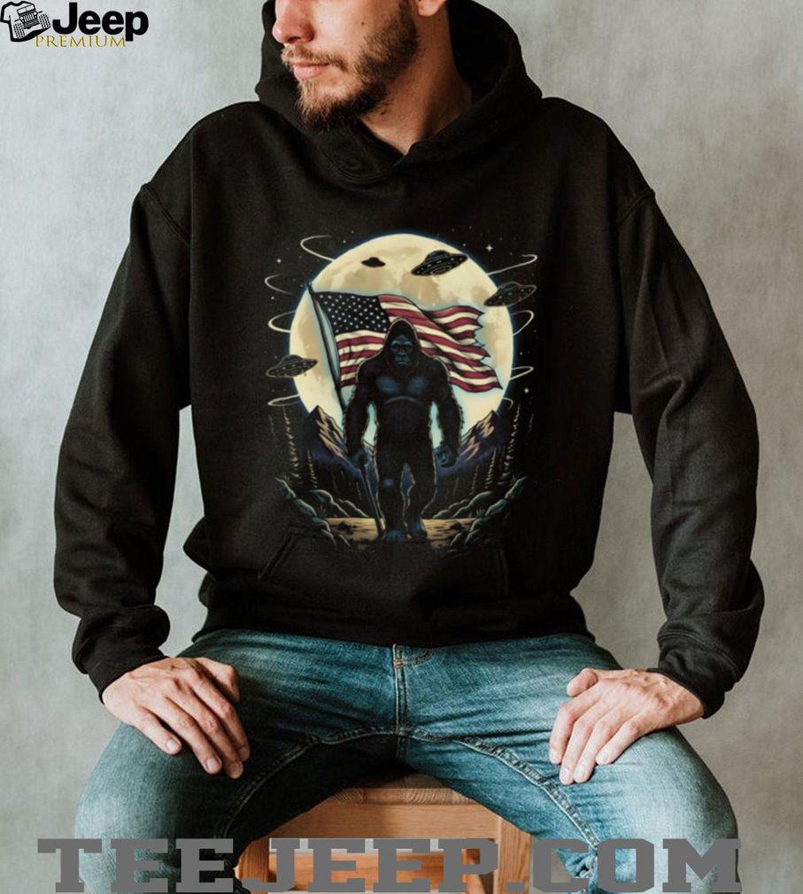 (Patriotic Bigfoot American Flag T Shirt Sasquatch & UFO Moon Graphic Tee)Patriotic Bigfoot American Flag T Shirt Sasquatch & UFO Moon Graphic Tee, Treat yourself or make a great gift for your loved ones