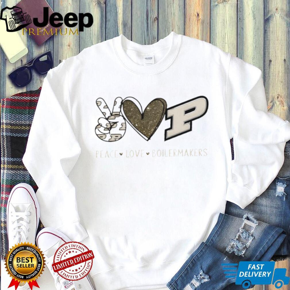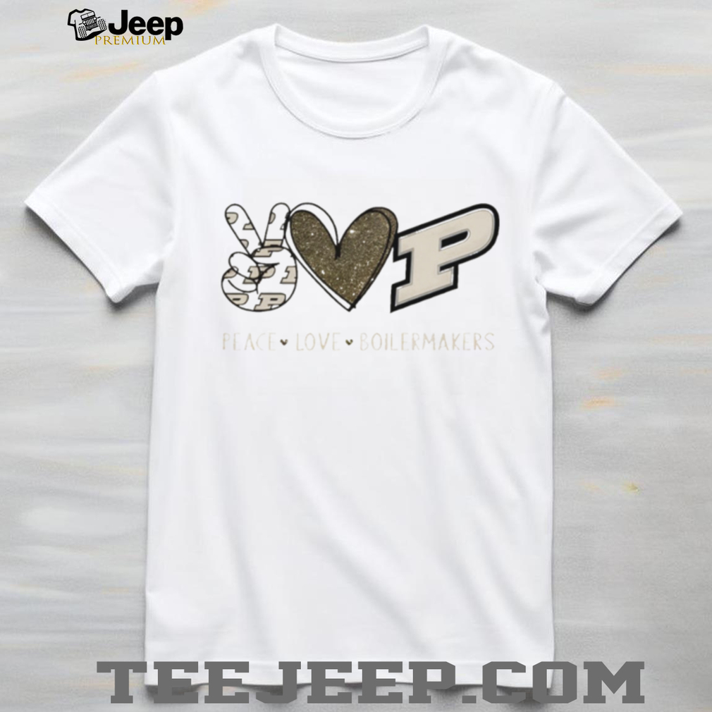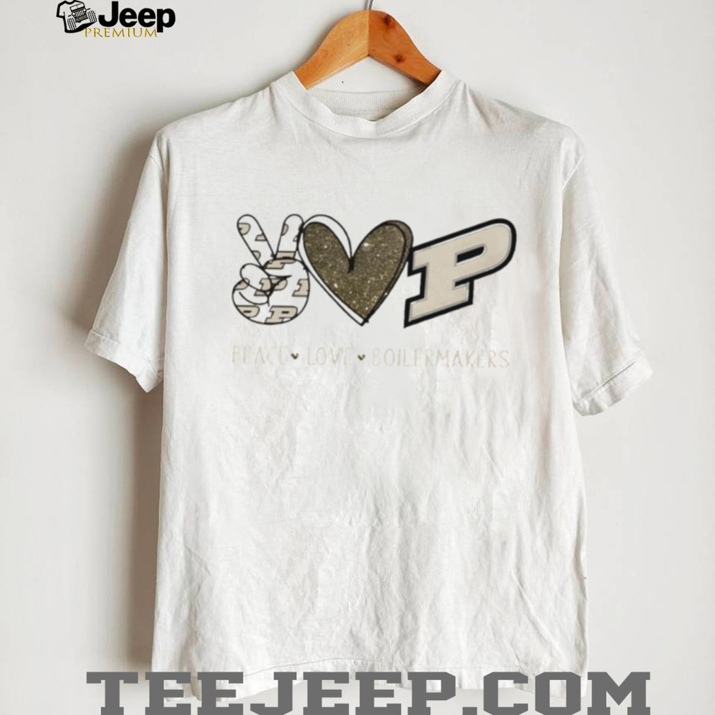 (Peace Love Boilermakers Purdue University Glitter Fan Shirt)Apr 19