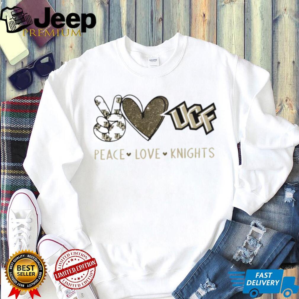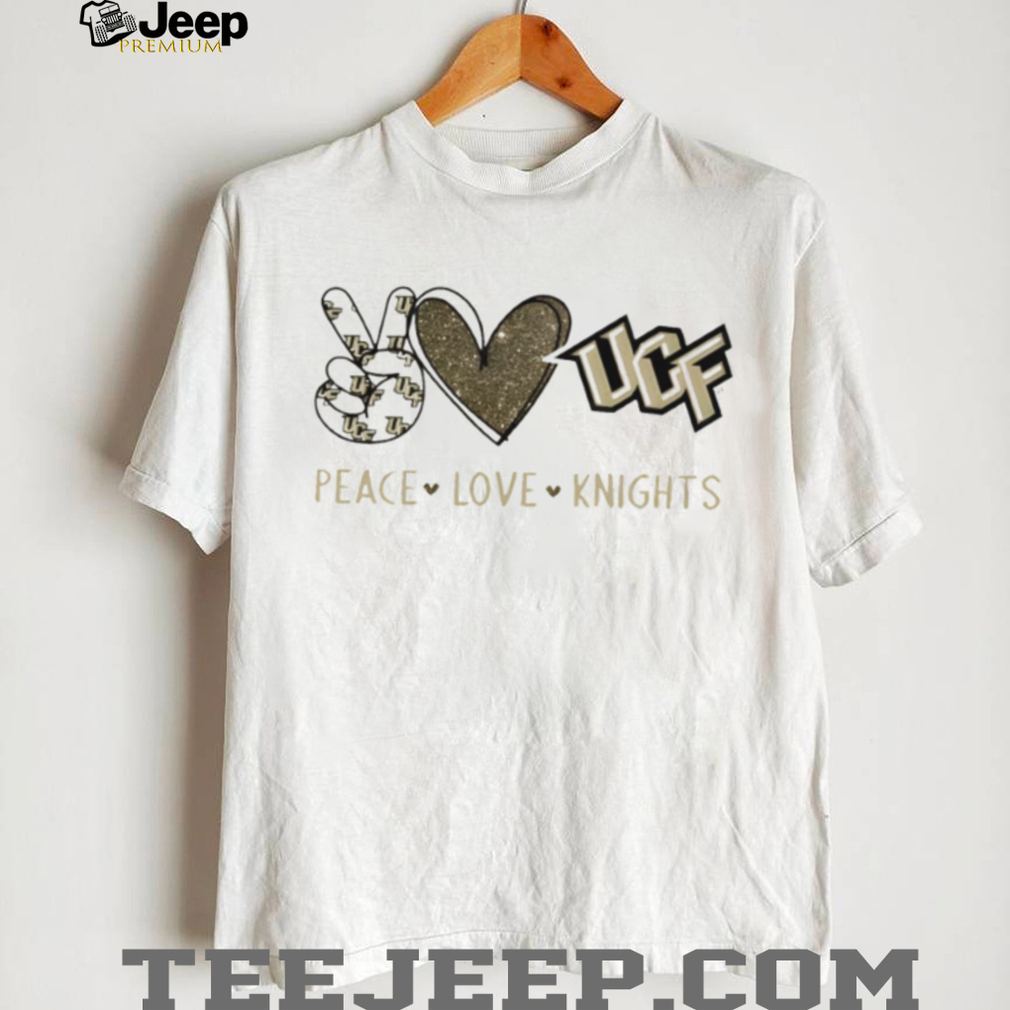 (Peace Love UCF Knights Black and Gold Glitter T Shirt)Apr 01