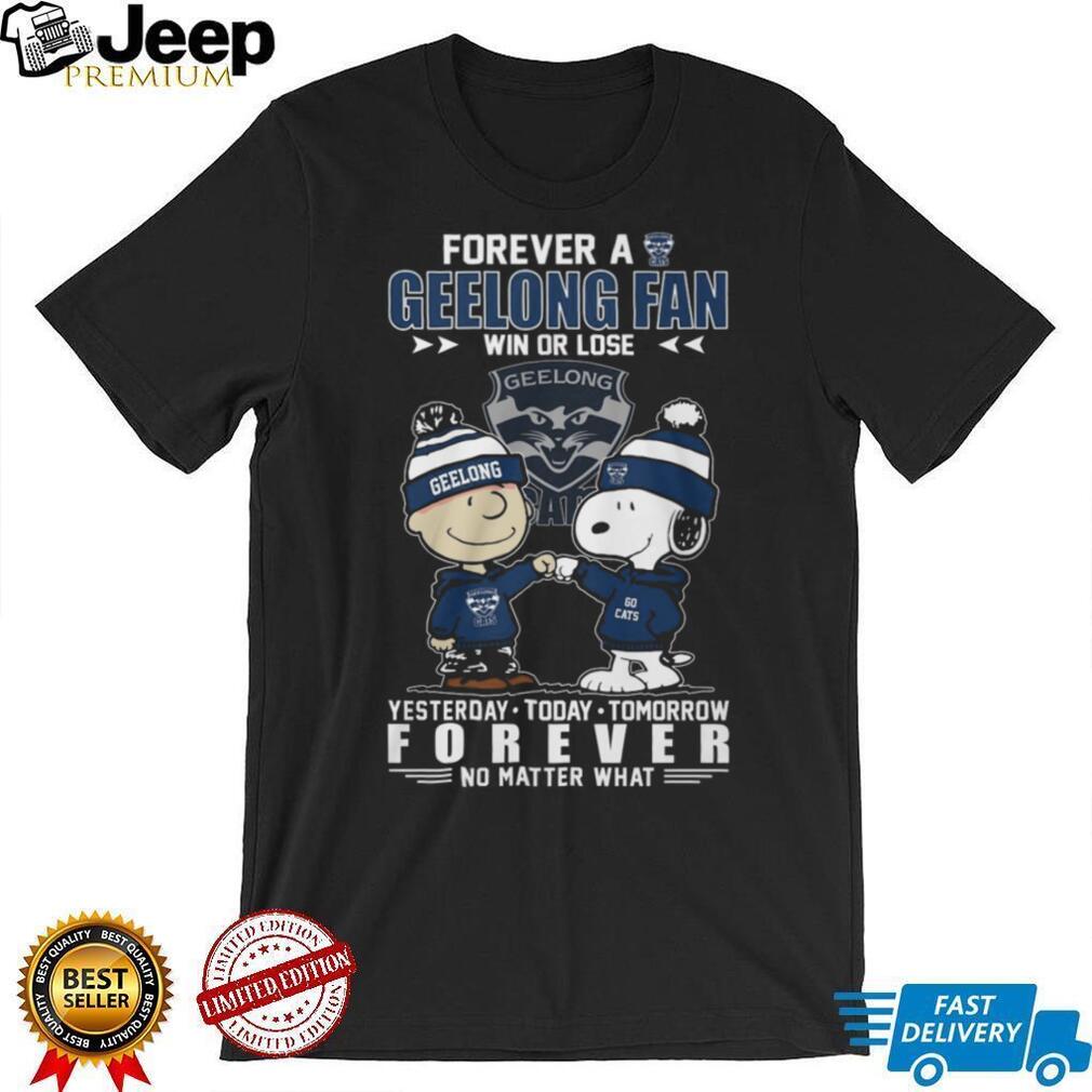 Peanuts Snoopy and Charlie Brown Forever A Geelong Cats Fan T Shirt, Treat yourself or make a great gift for your loved ones