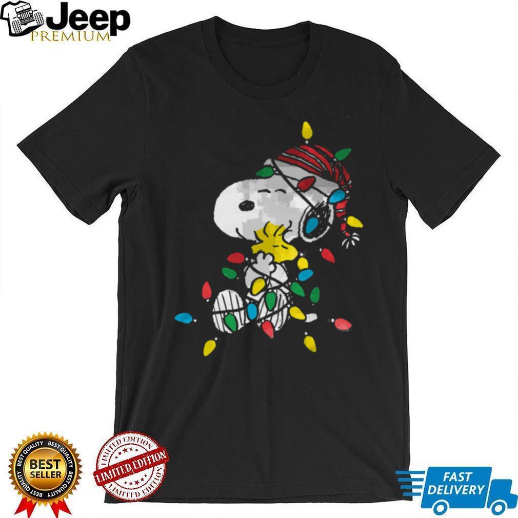 Get into the holiday spirit with this adorable Peanuts Snoopy and Woodstock Christmas lights T-shirt! Featuring Snoopy and Woodstock tangled in Christmas lights, this shirt is perfect for spreading some festive cheer and showing off your love for the Peanuts gang.