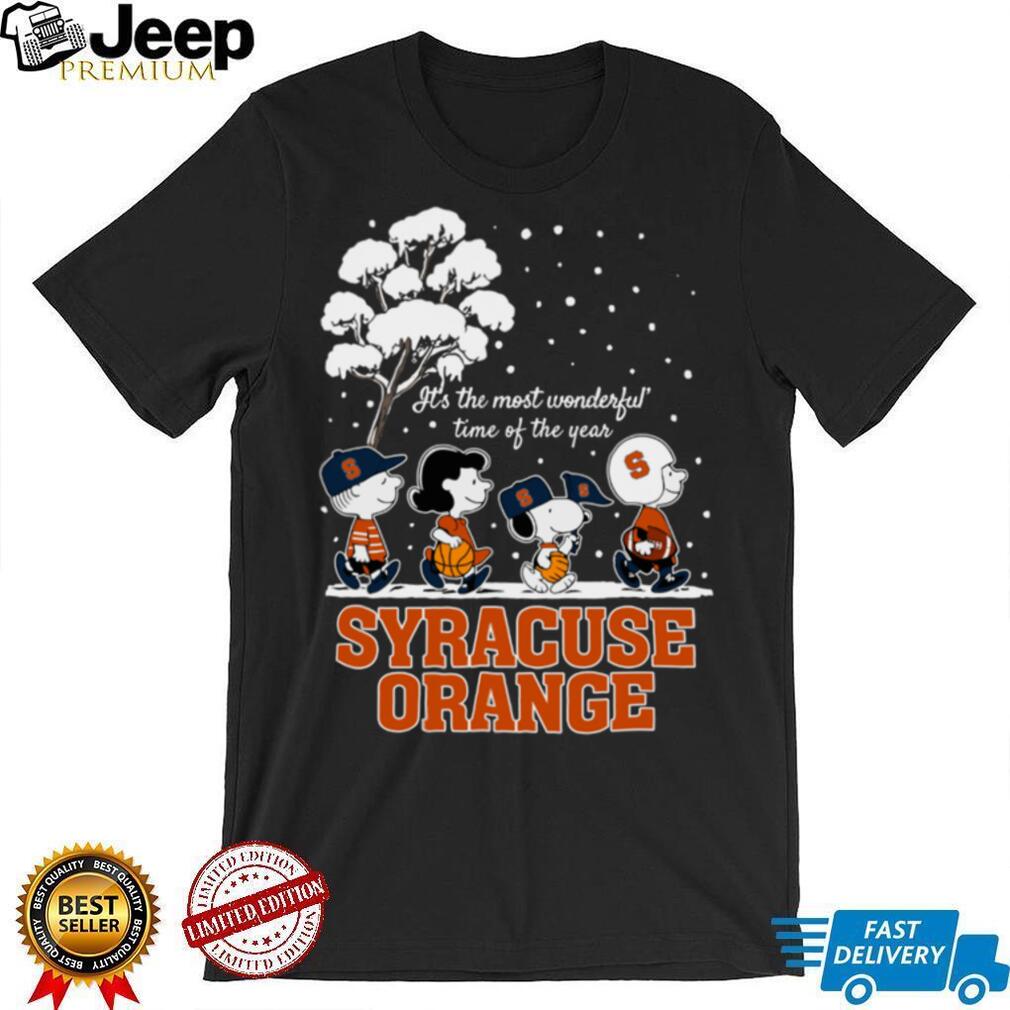 This T-shirt is a must-have for any true Syracuse Orange enthusiast. Whether you’re tailgating, watching the game at the local bar, or spreading holiday cheer around town, this T-shirt is your go-to choice. Searching for a unique Christmas gift for a ‘Cuse student or alumni? This Peanuts Syracuse Orange tee is a guaranteed win! Give the gift of Orange pride and holiday joy.