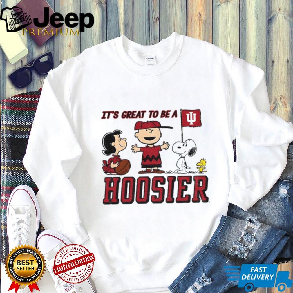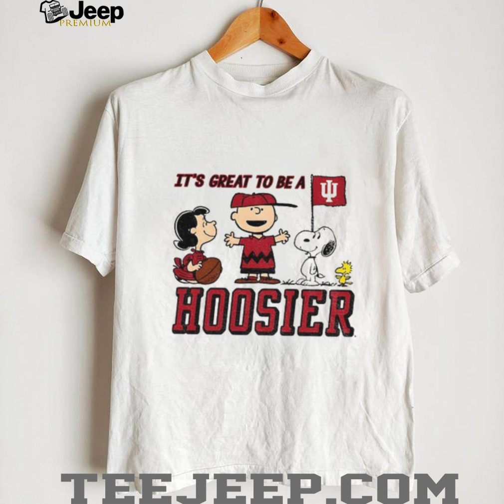 Show your Hoosier pride with this “Peanuts x Indiana Hoosier It’s Great to Be a Hoosier Football” T-shirt! Perfect for fans of Indiana University and the beloved Peanuts characters, this shirt is a fun way to celebrate your school spirit and a love for football.