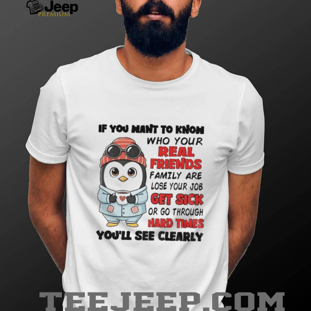👕 About Penguin if you want to know who your real friends and family are lose your job get sick or go through hard times shirt