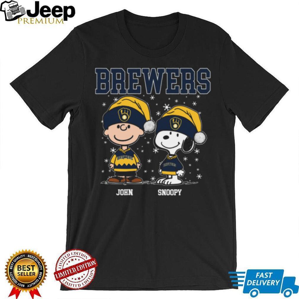 It’s the most wonderful time of the year, and what better way to show your Milwaukee Brewers pride than with this unique Christmas shirt? Imagine the smiles and cheers as you unwrap this holiday baseball tee featuring Snoopy and Charlie Brown in festive Santa hats. This personalized shirt is the perfect funny MLB gift idea for any Brewers fan who loves a touch of nostalgia and holiday cheer.