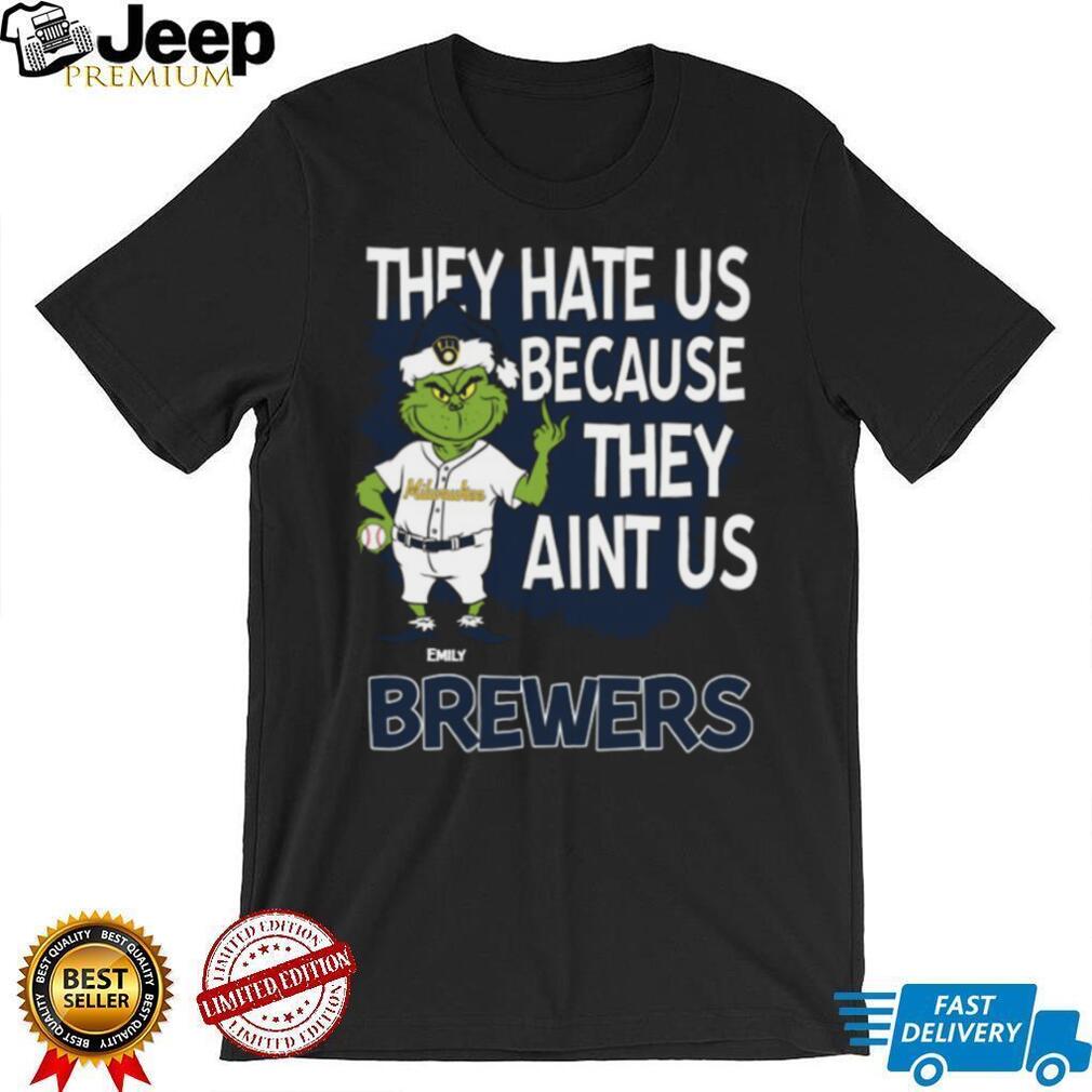 Score a home run this Christmas with the perfect personalized gift for the Milwaukee Brewers fan in your life! This isn’t just another baseball tee; it’s a custom-made tribute to the Brewers, infused with Grinchy holiday spirit. Imagine Santa rocking the Brewers logo, bringing a unique twist to your festive attire. The “They Hate Us ‘Cause They Ain’t Us” quote adds a touch of humor to this must-have MLB gift. Ready to make a Brewers fan’s Christmas extra special?
