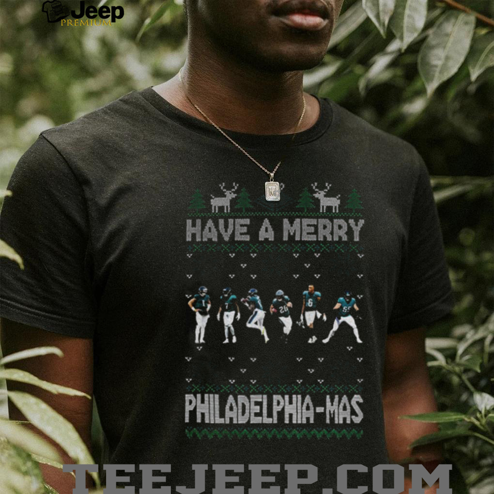 This “Philadelphia Eagles Football Have A Merry Philadelphia Mas Merry Christmas shirt” is a unique blend of holiday spirit and sports enthusiasm. Crafted from a soft, comfortable cotton blend, it’s perfect for wearing to holiday parties, family gatherings, or while watching the game with fellow fans. The festive design, incorporating classic Eagles colors and symbols with Christmas elements, makes it a standout piece. Its durable print ensures your holiday and team spirit remain bright and vibrant throughout the season, wash after wash. Available in various sizes, it’s designed for a relaxed and comfortable fit, making it an essential for any Eagles fan.