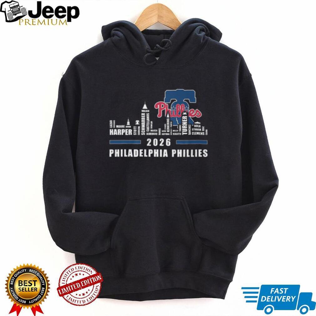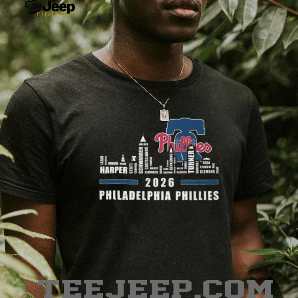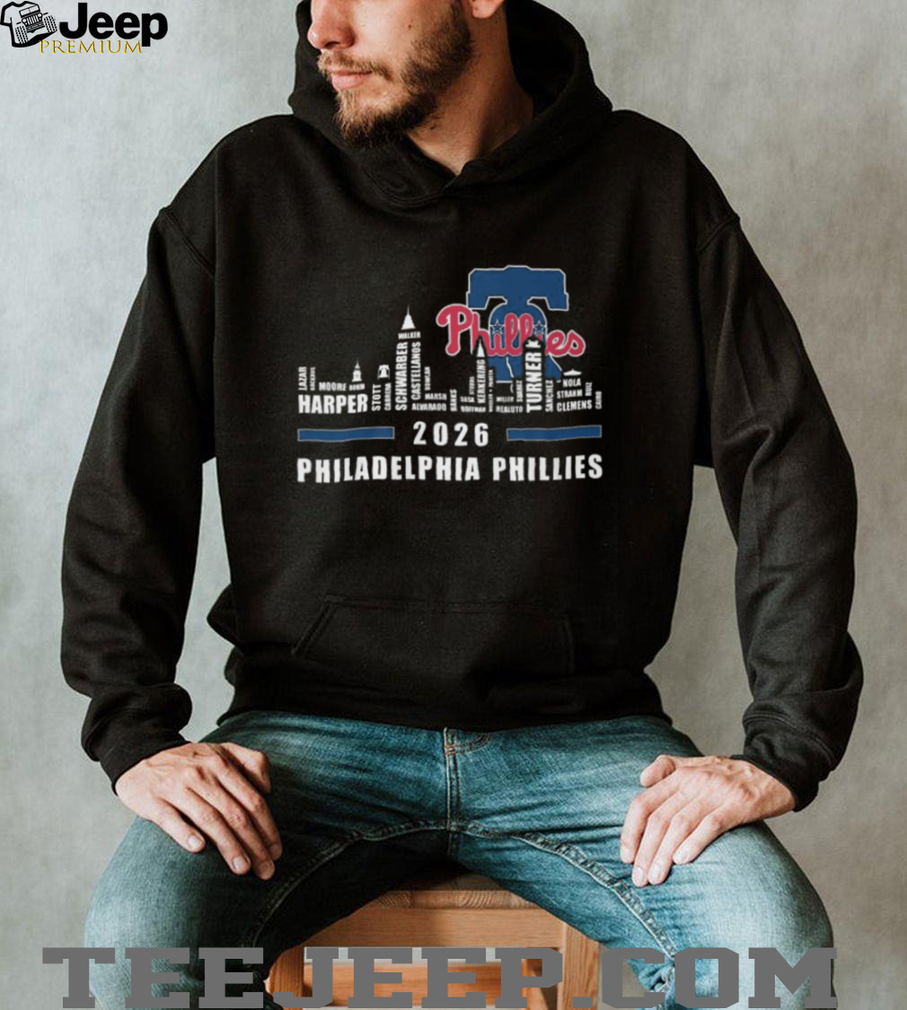 👕 About Philadelphia Phillies 2024 Players Names Skyline Liberty Bell T Shirt
