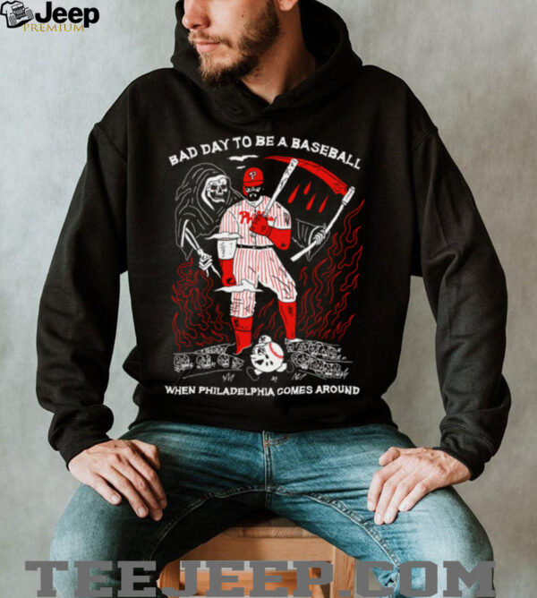 Is it a bad day to be a baseball? Maybe for the other team! Show your Philadelphia Phillies pride with this hilarious tee. More than just a shirt, it’s a lighthearted jab at the competition and a testament to your unwavering support for the Fightin’ Phils!